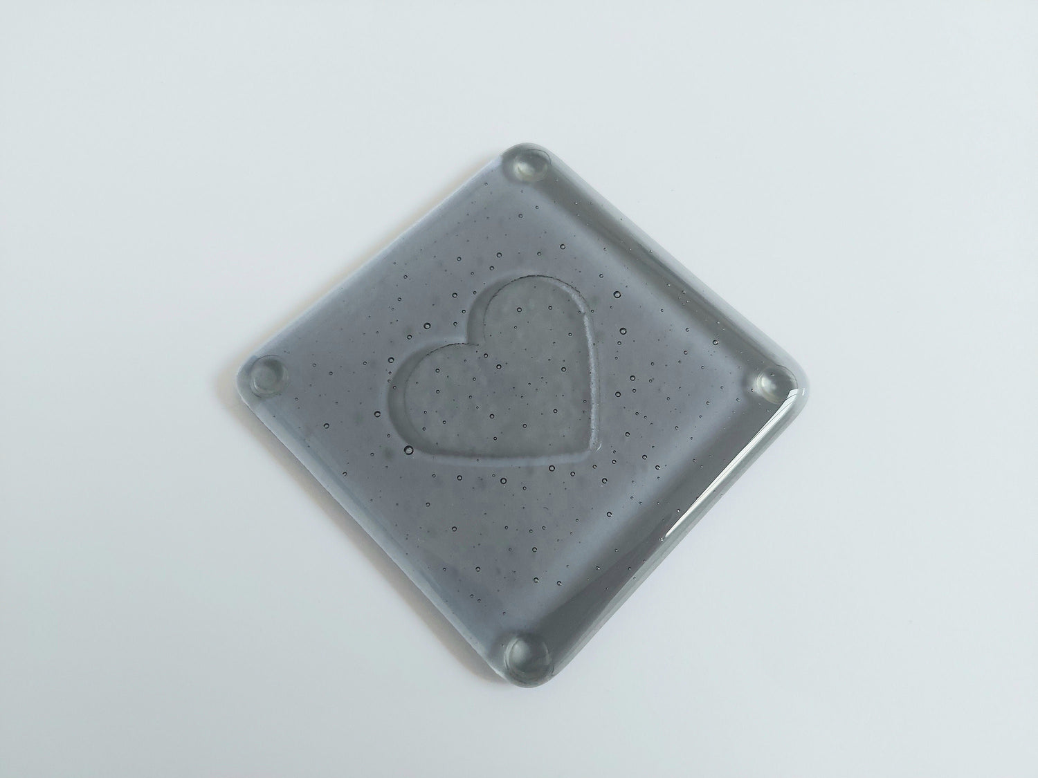 Handmade glass ornaments, coasters, dishes and wish sticks with a heart motif