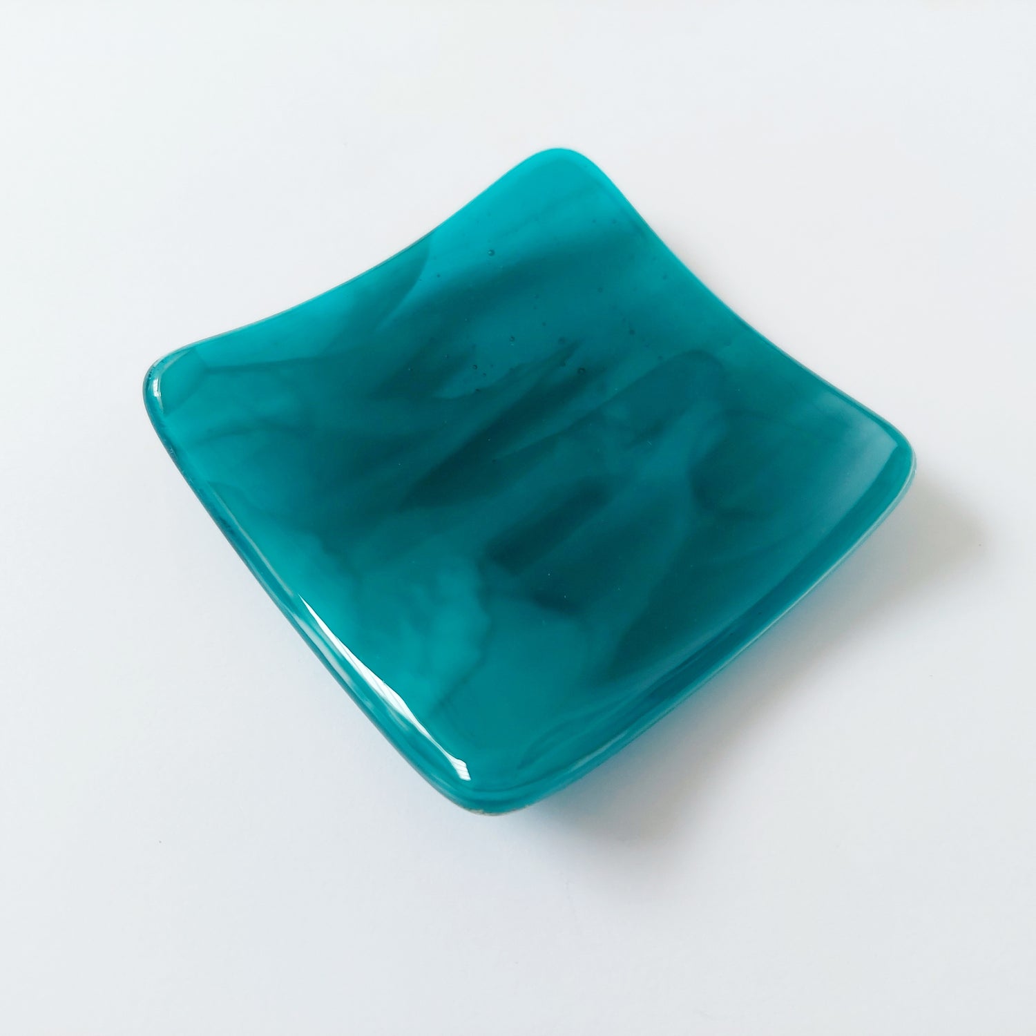 Teal and Aqua Glass Art Curve, Handmade Mantlepiece Ornament