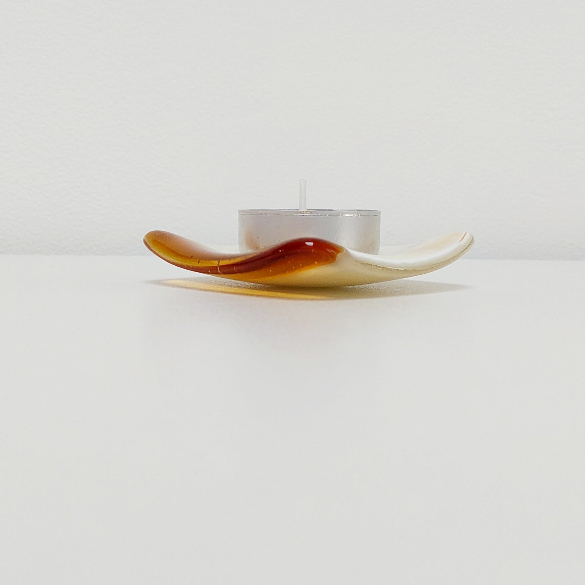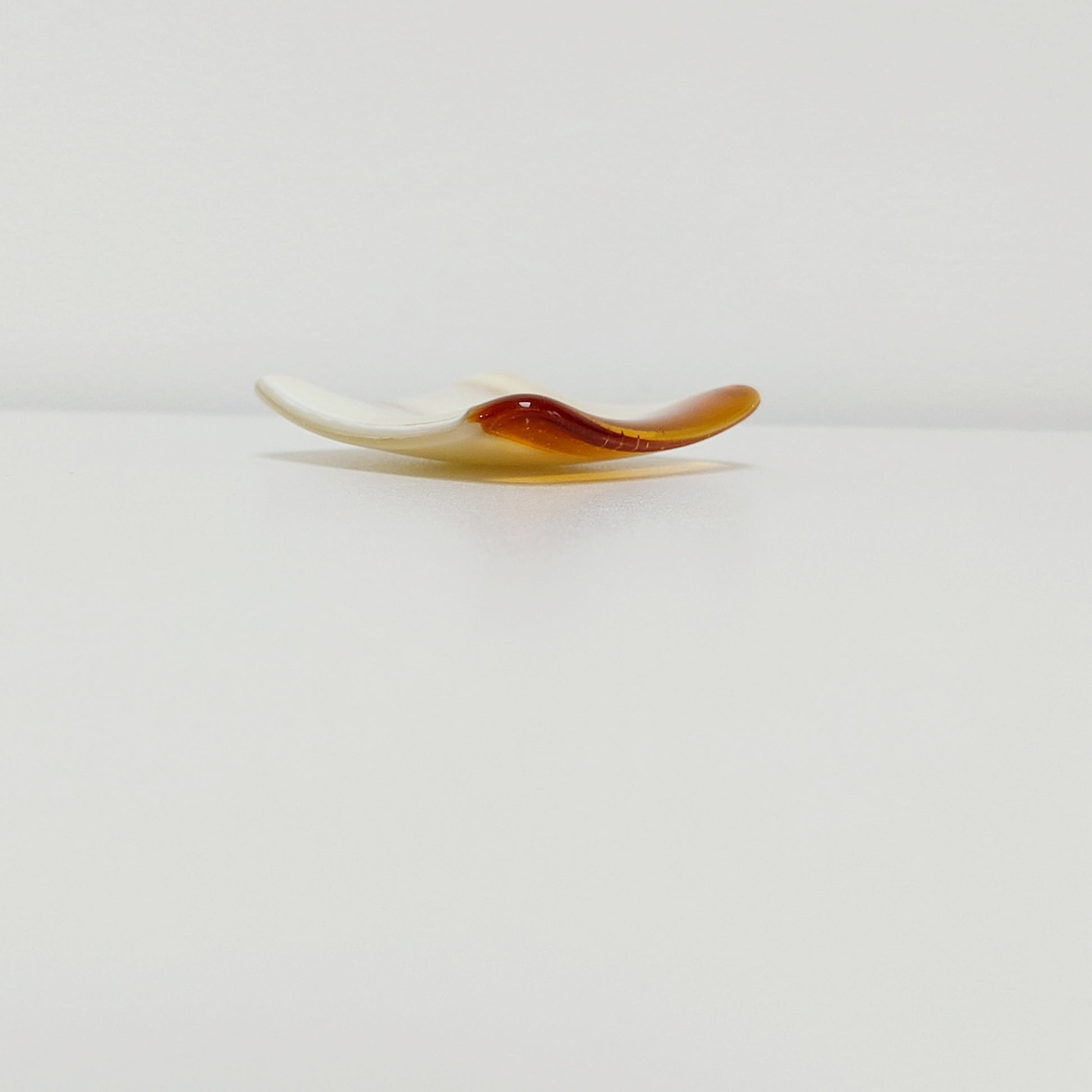 The small glass dish was handmade from opalescent French vanilla and transparent amber artisan glass.