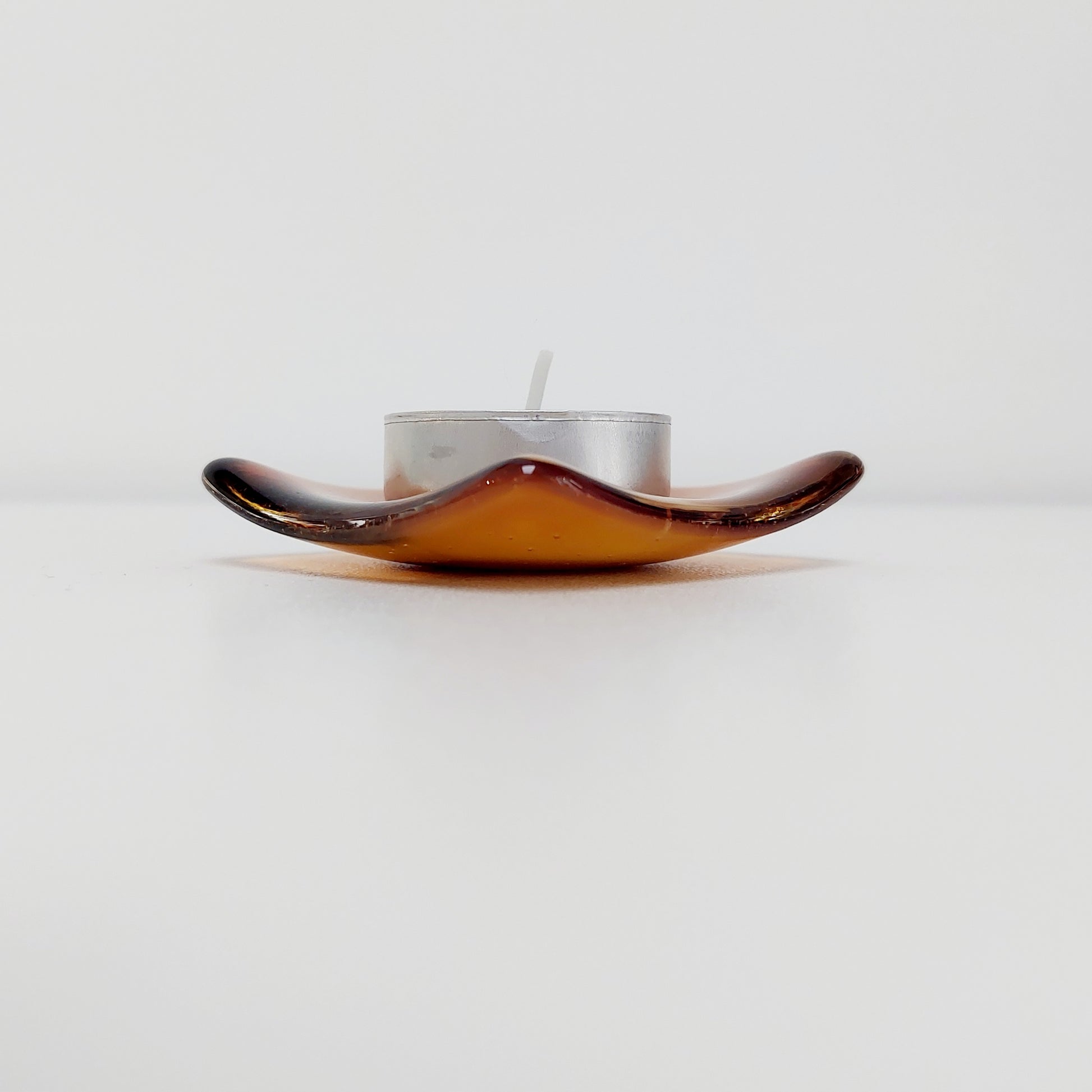 The dish looks particularly stunning placed in front of direct light, as the translucent nature of the amber glass allows light to shine through and reflect colour onto the surrounding surfaces.
