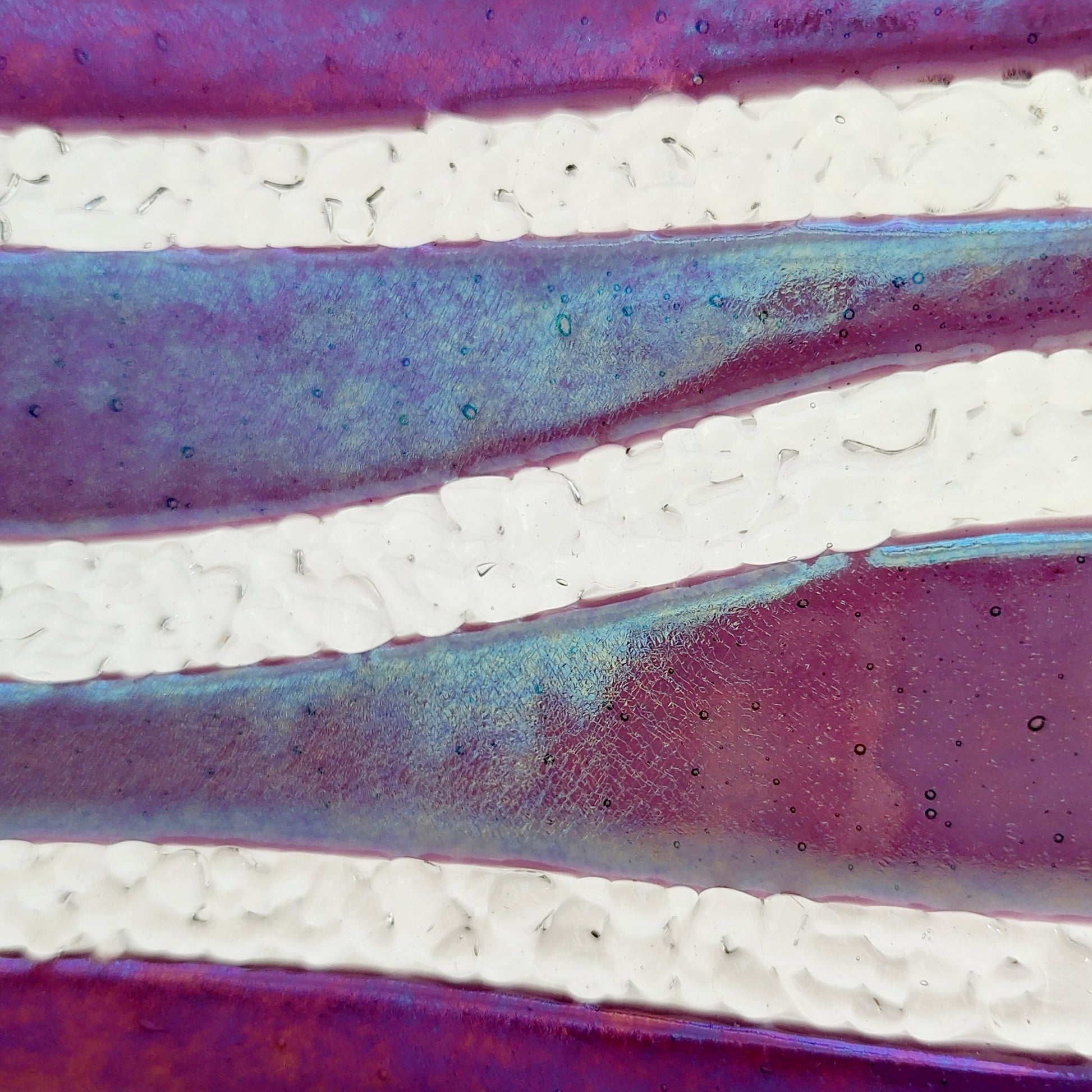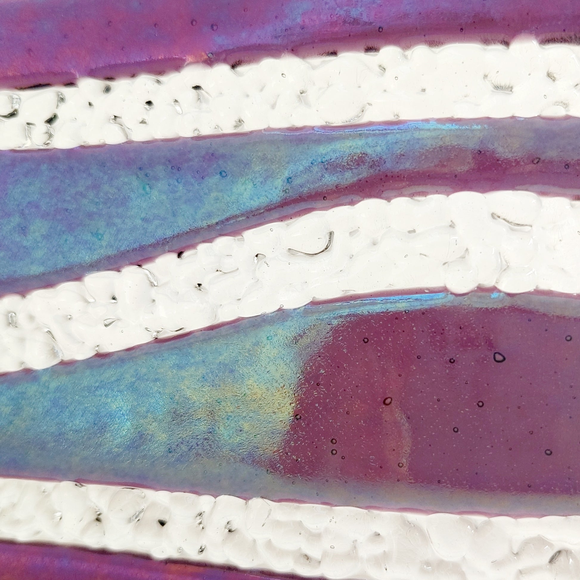 • Iridescent art glass with colour-shifting finish