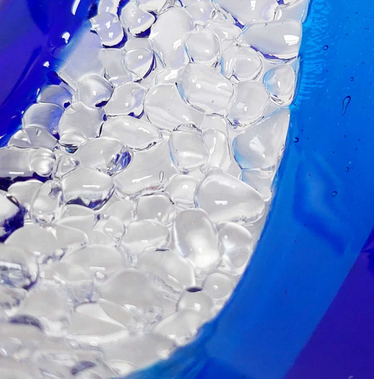 The freestanding wave was handmade from transparent royal blue, cobalt blue and crystal clear artisan glass.