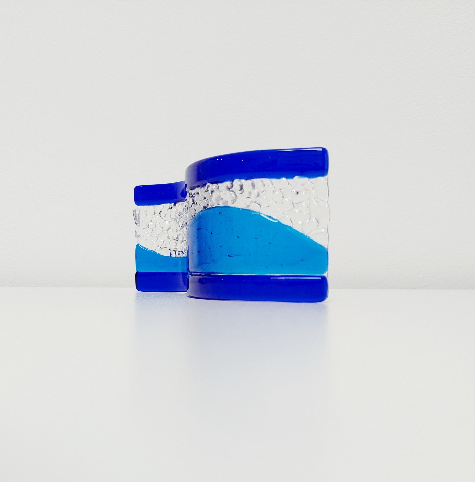 Blue Fused Glass Art Wave, Small Handcrafted Lake District Ornament