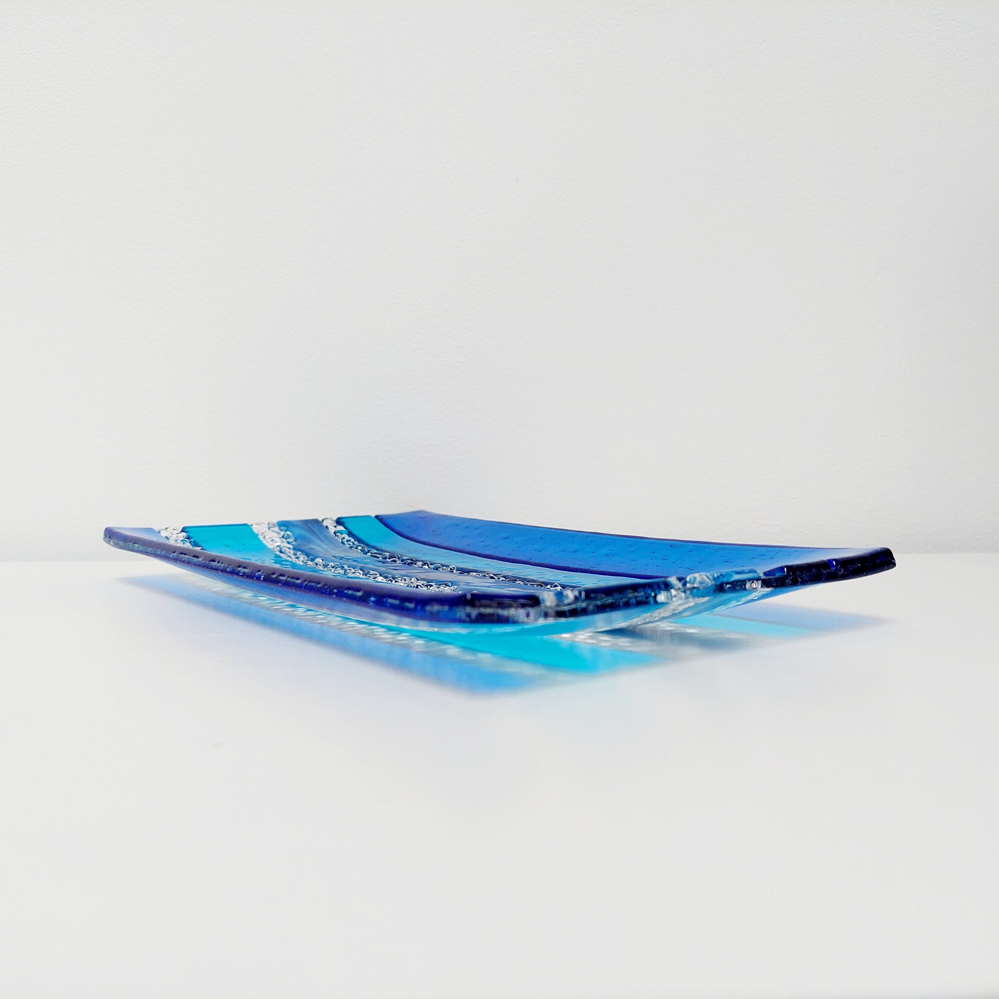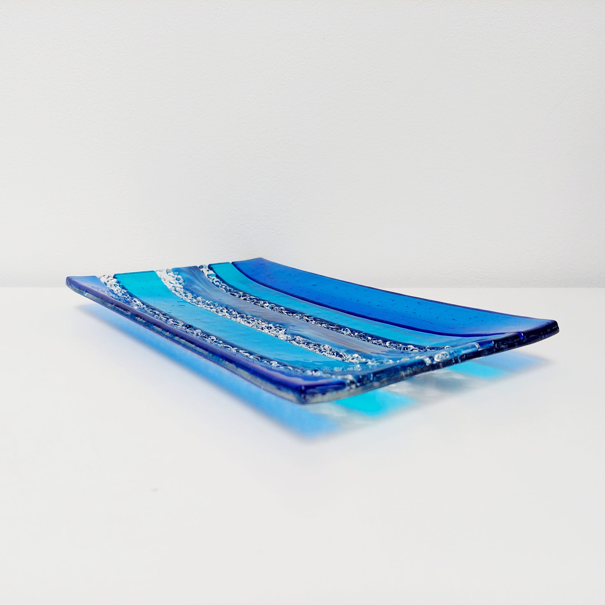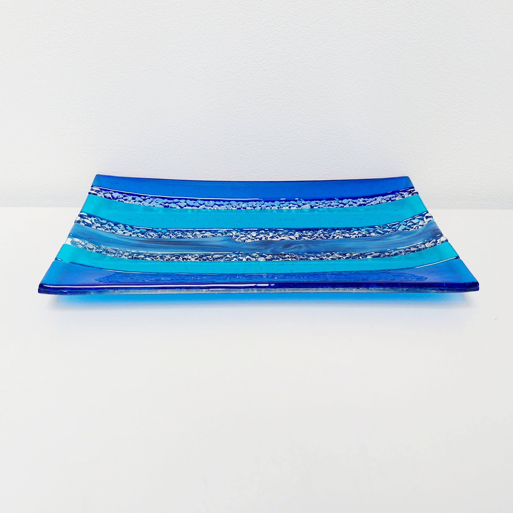 Blue Textured Glass Art Plate, Handcrafted Decorative Tray