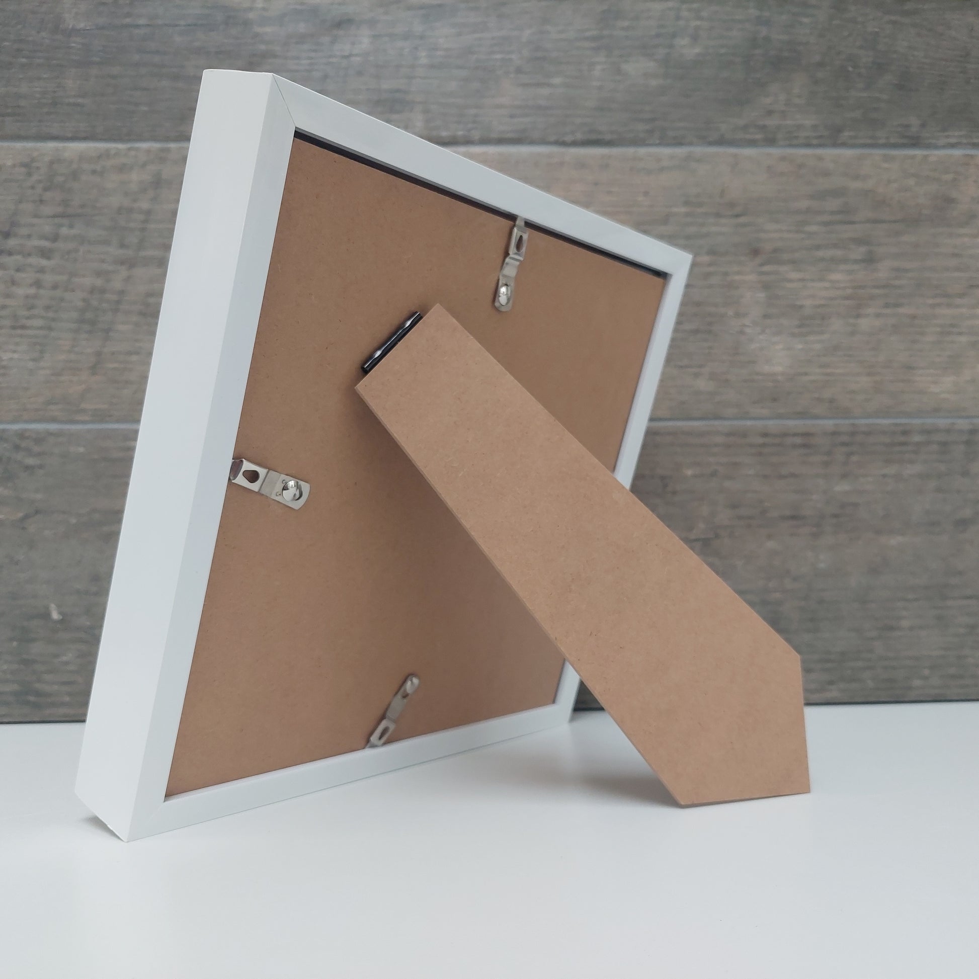 The depth of the frame enables the picture to stand upright without the stand.