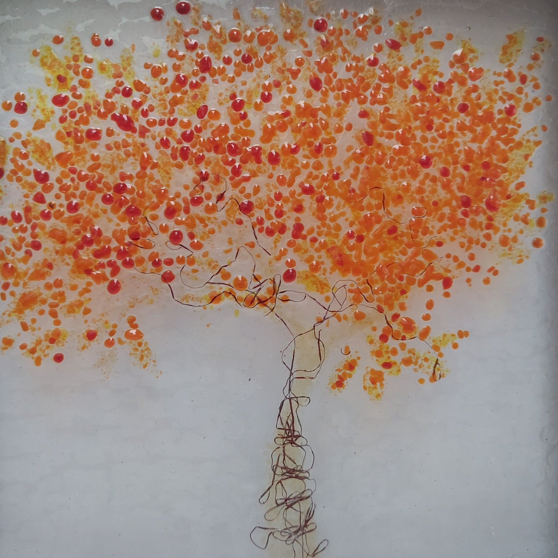 Framed Autumnal Glass Tree, Handmade Fused Glass Picture