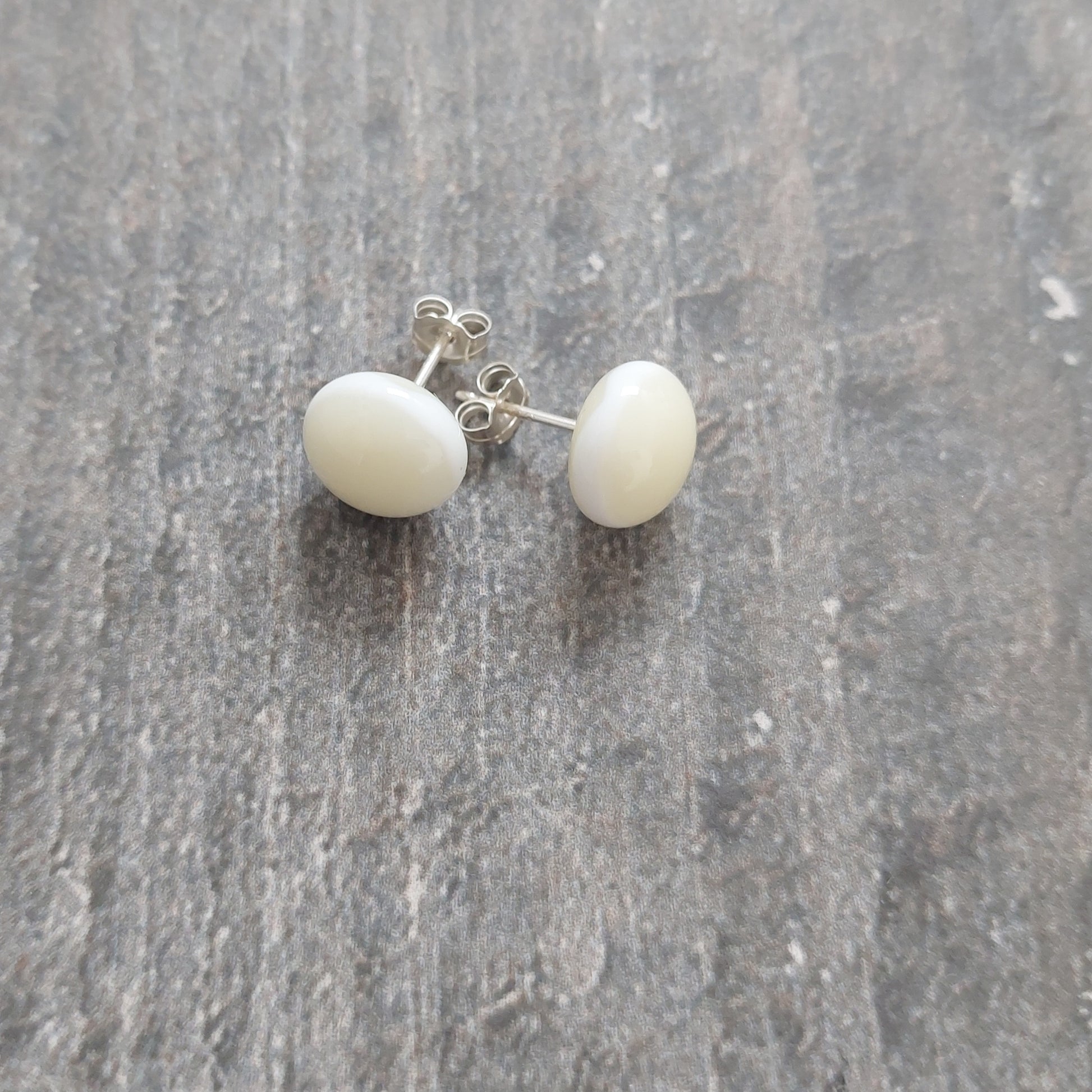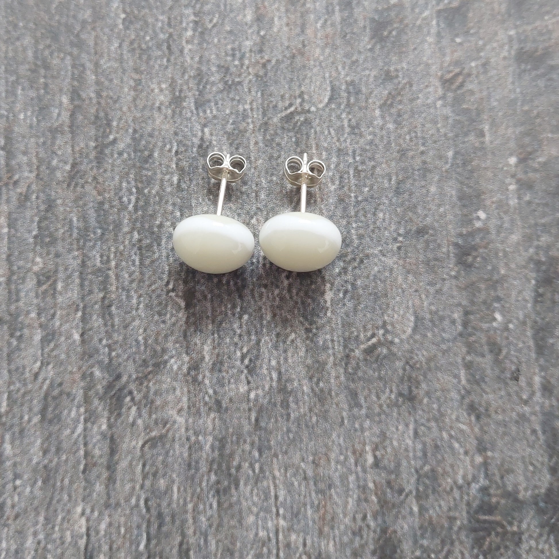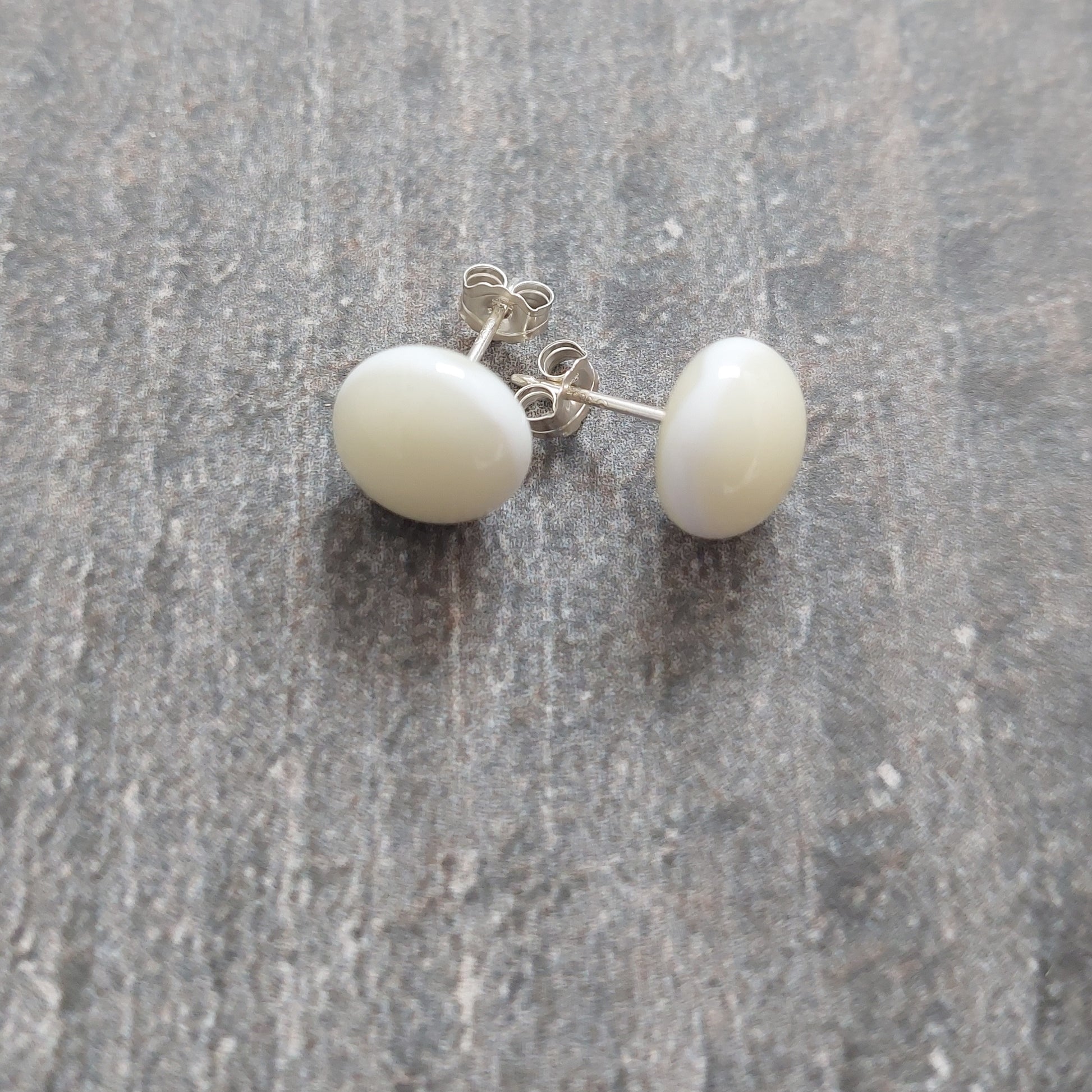 A set of small cream glass stud earrings handcrafted in the Lake District.
