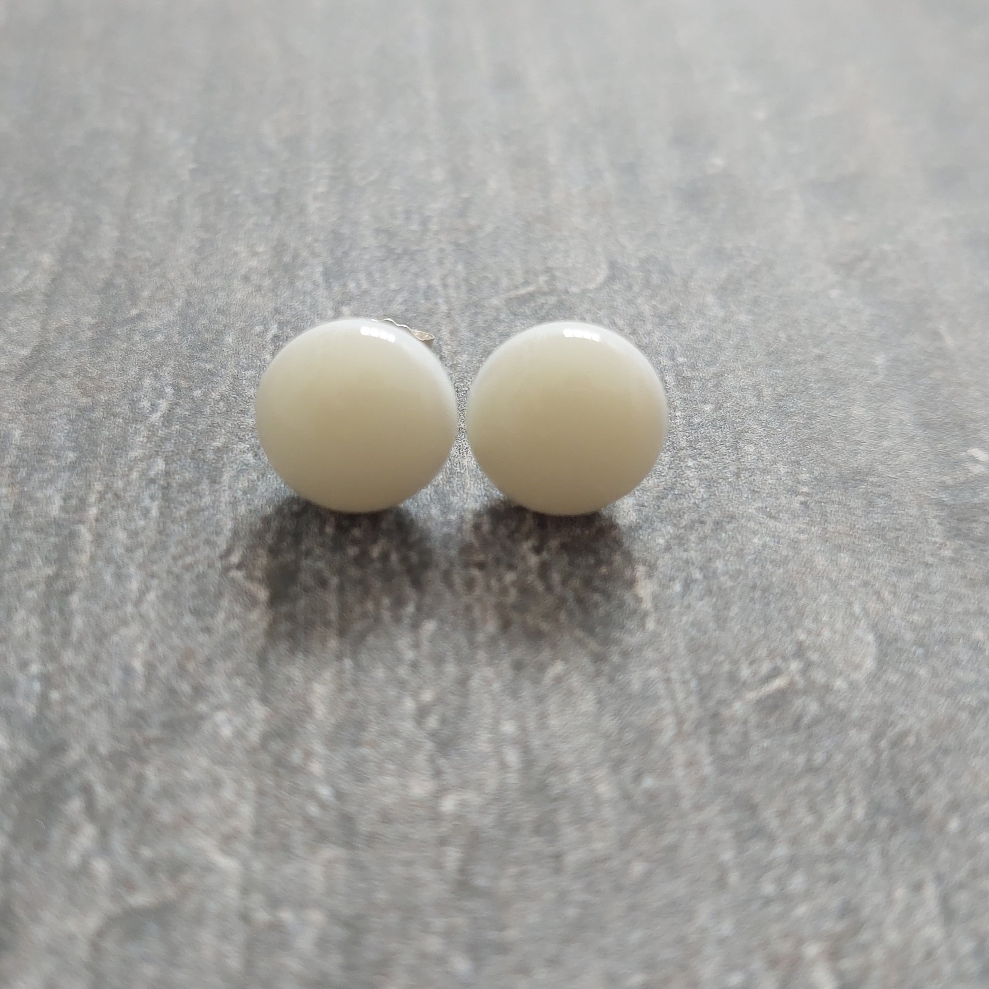 French Vanilla Glass Stud Earrings with Sterling Silver Posts, Handmade Cream Studs