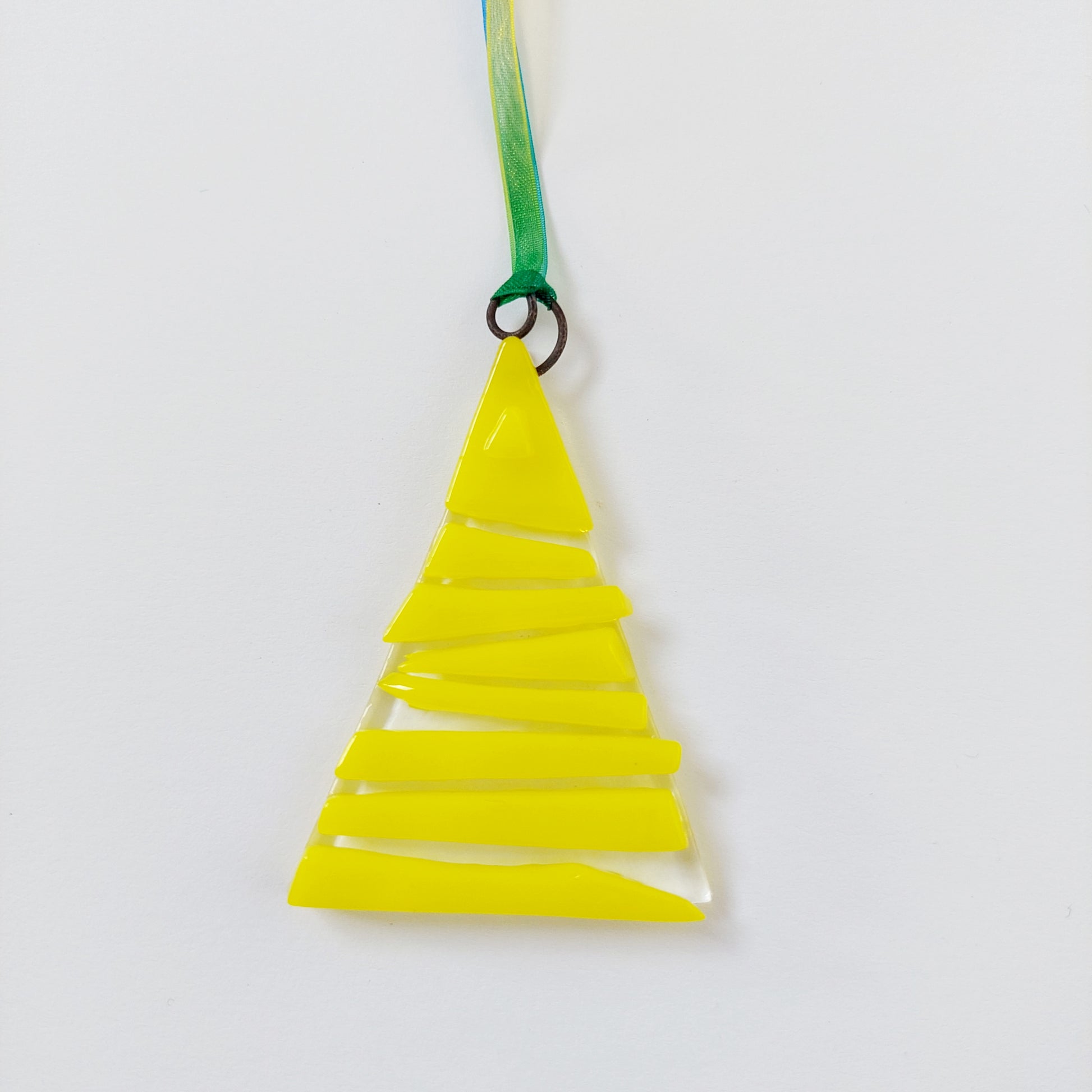 An abstract yellow tree handcrafted in the Lake District from vibrant opalescent yellow and crystal clear glass.