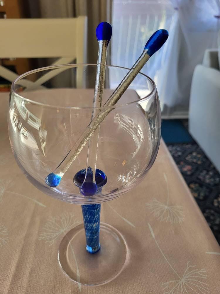 Handmade Glass Swizzle Sticks, Colourful Fused Glass Cocktail Stirrers