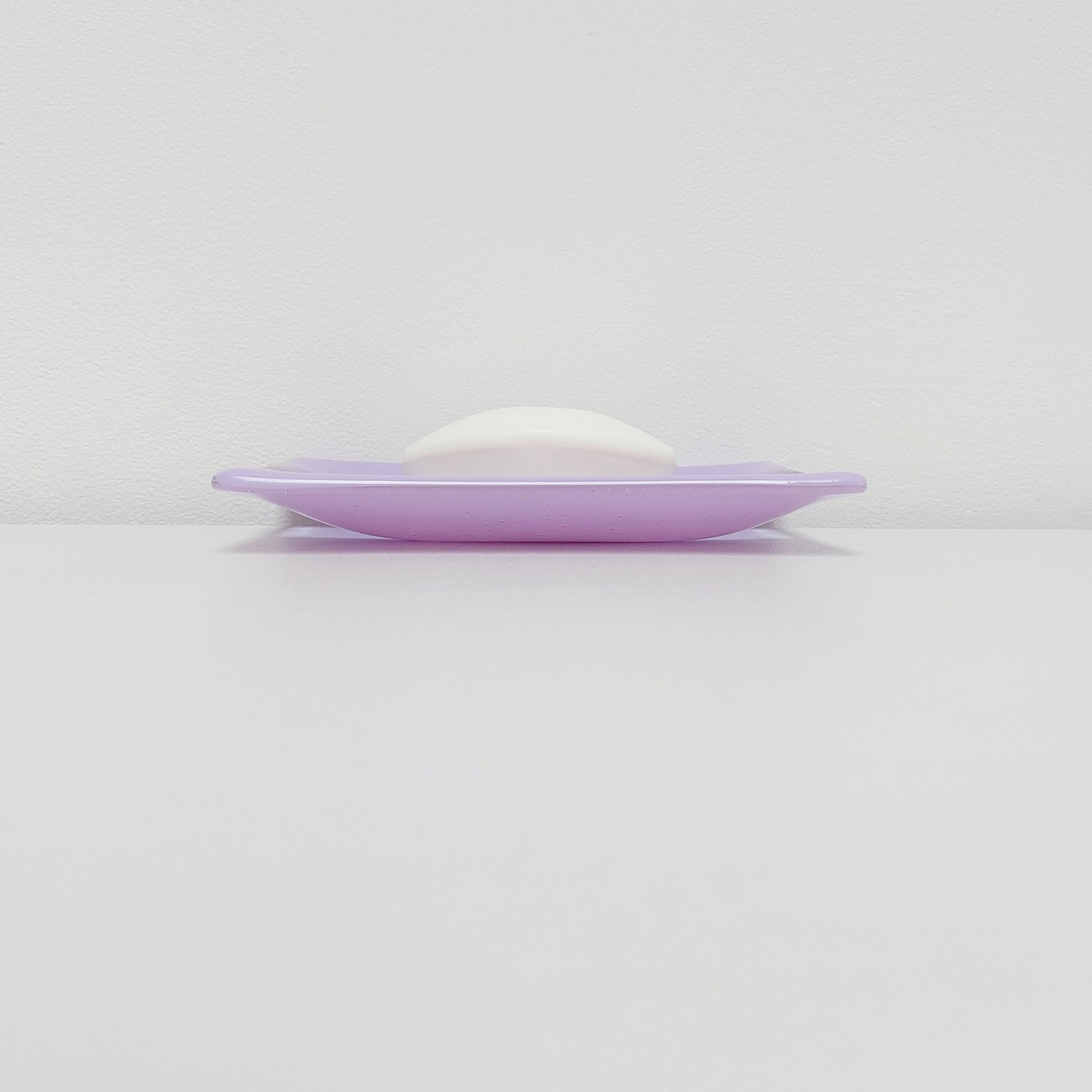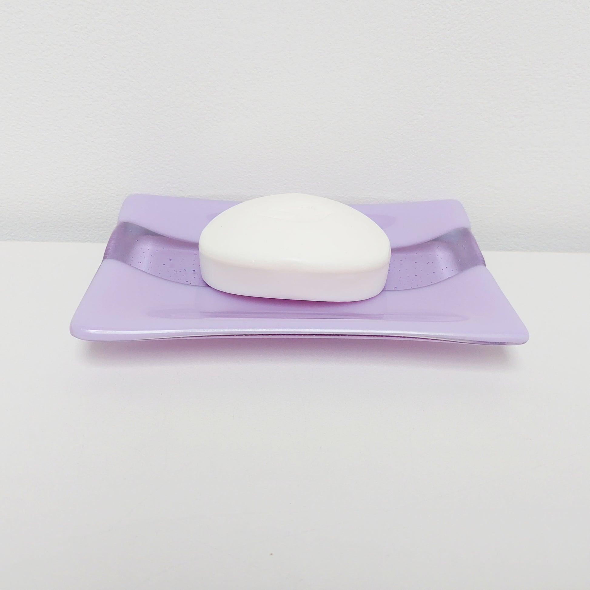 A gorgeous lilac (light purple) kiln formed glass trinket dish handcrafted in the Lake District.