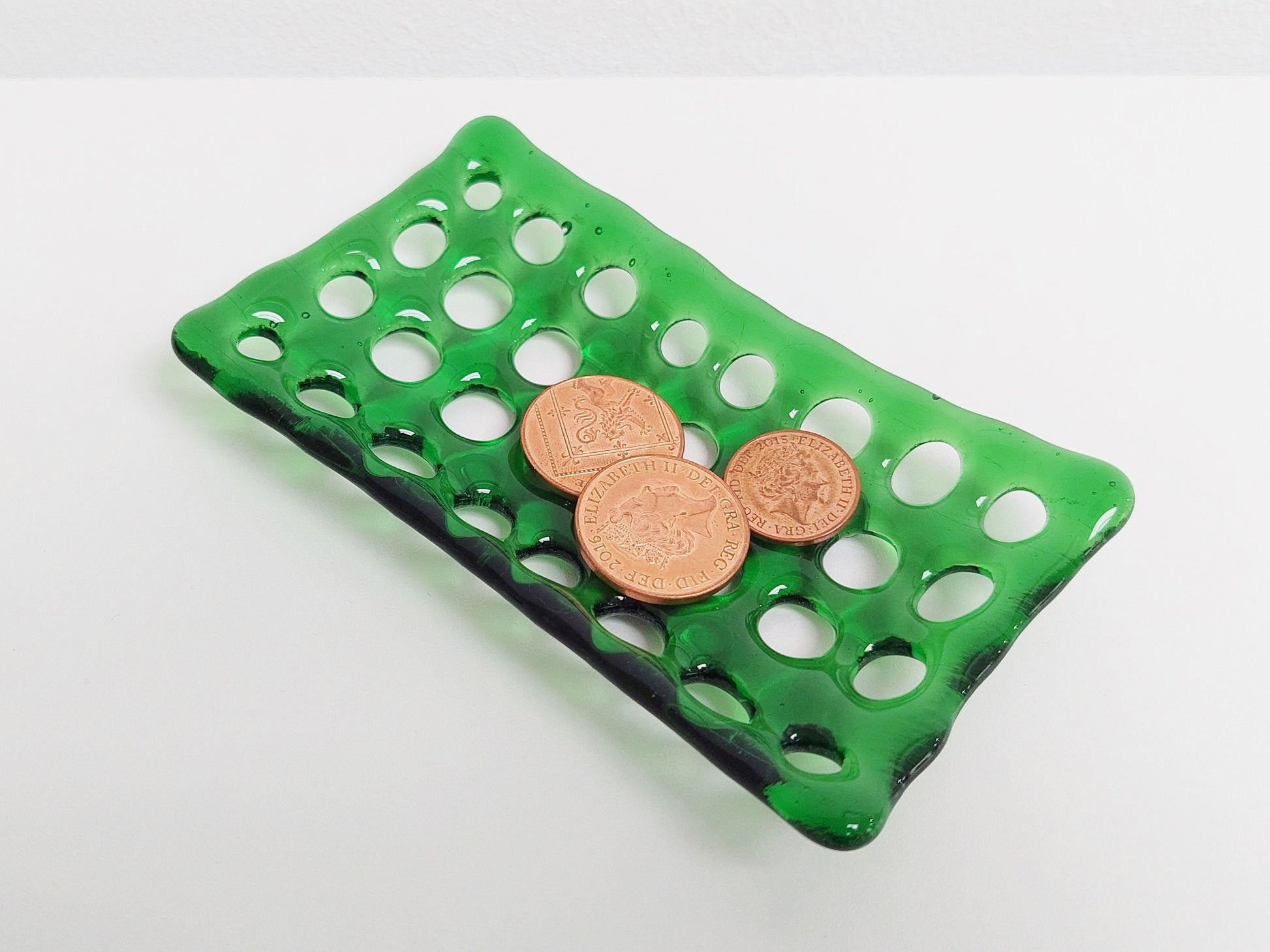 Although designed as a soap dish, it could also be used as a tea light or small candle holder; a trinket dish for rings and coins; or as an ornamental piece of glass art.