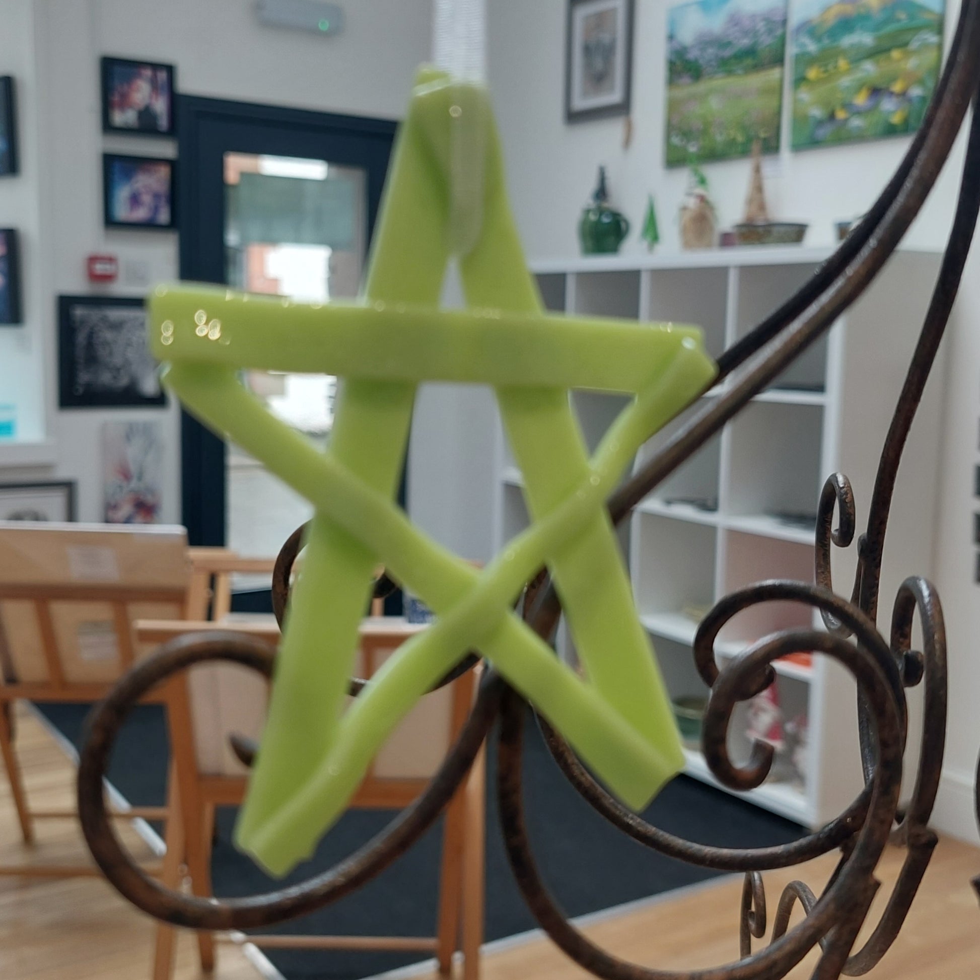 Lime Kiln Formed Glass Star, Green Christmas Tree Ornament