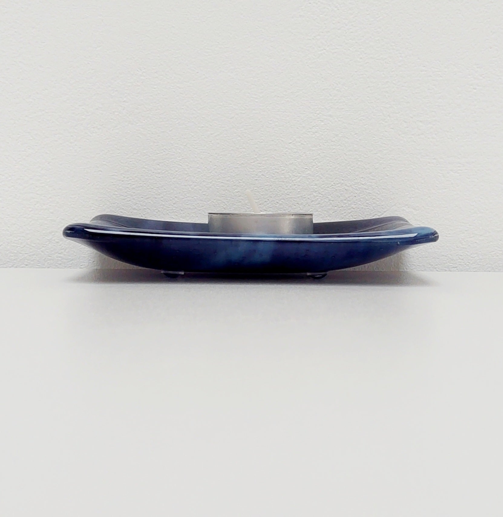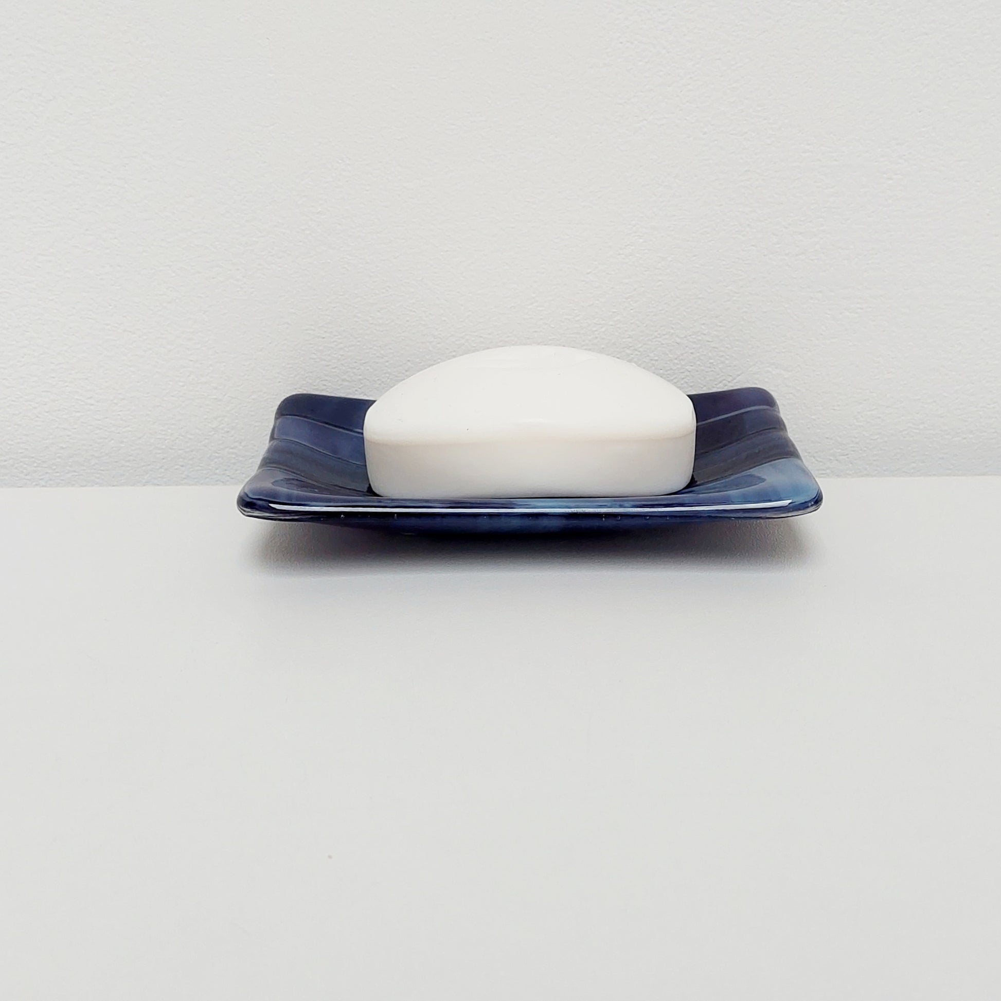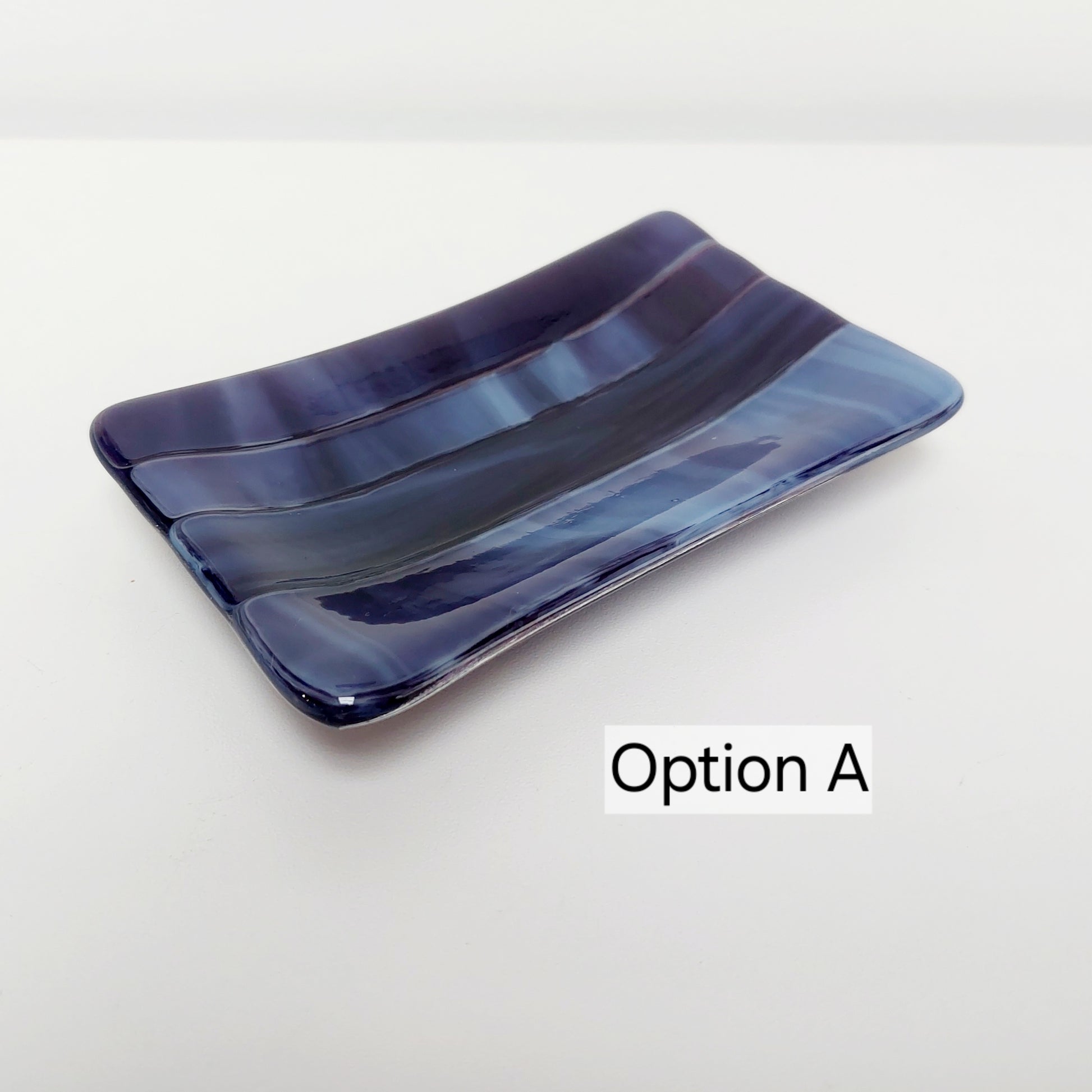Midnight Glass Art Dish, Handmade Royal Purple and Lilac Fused Glass Soap Tray