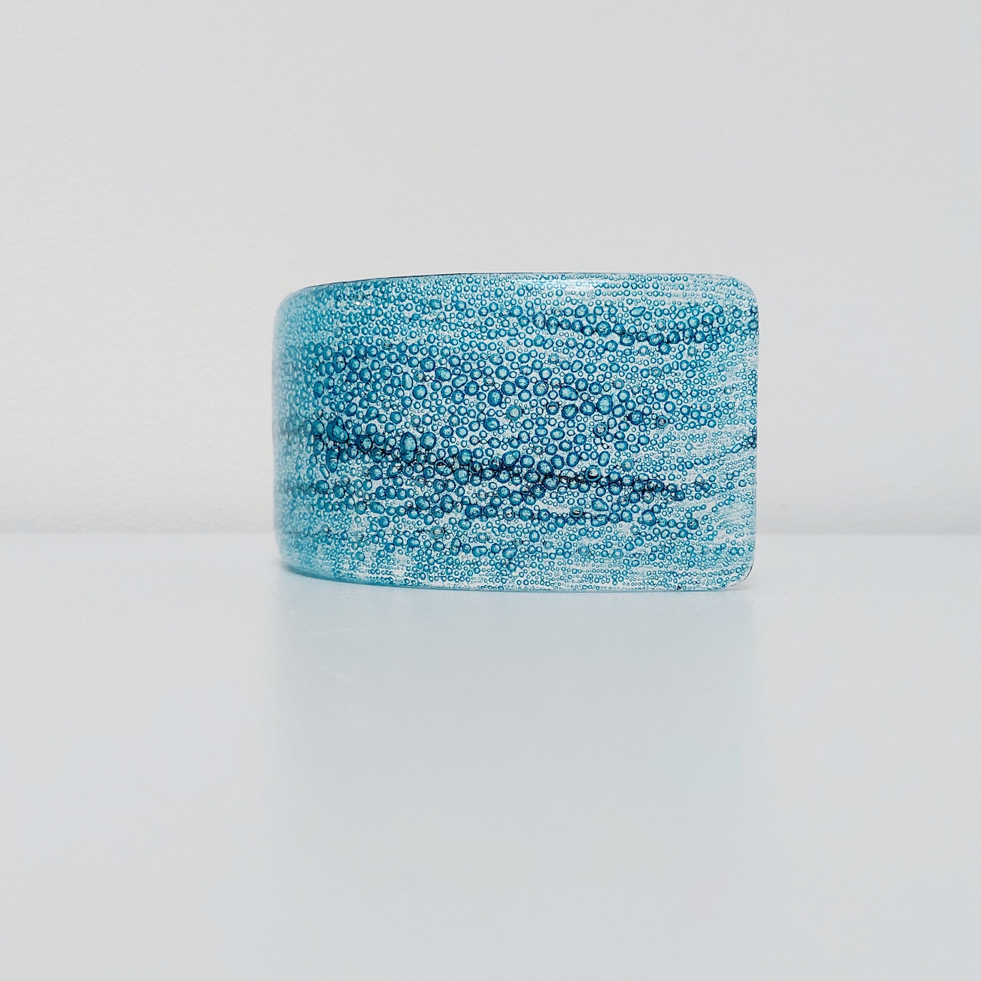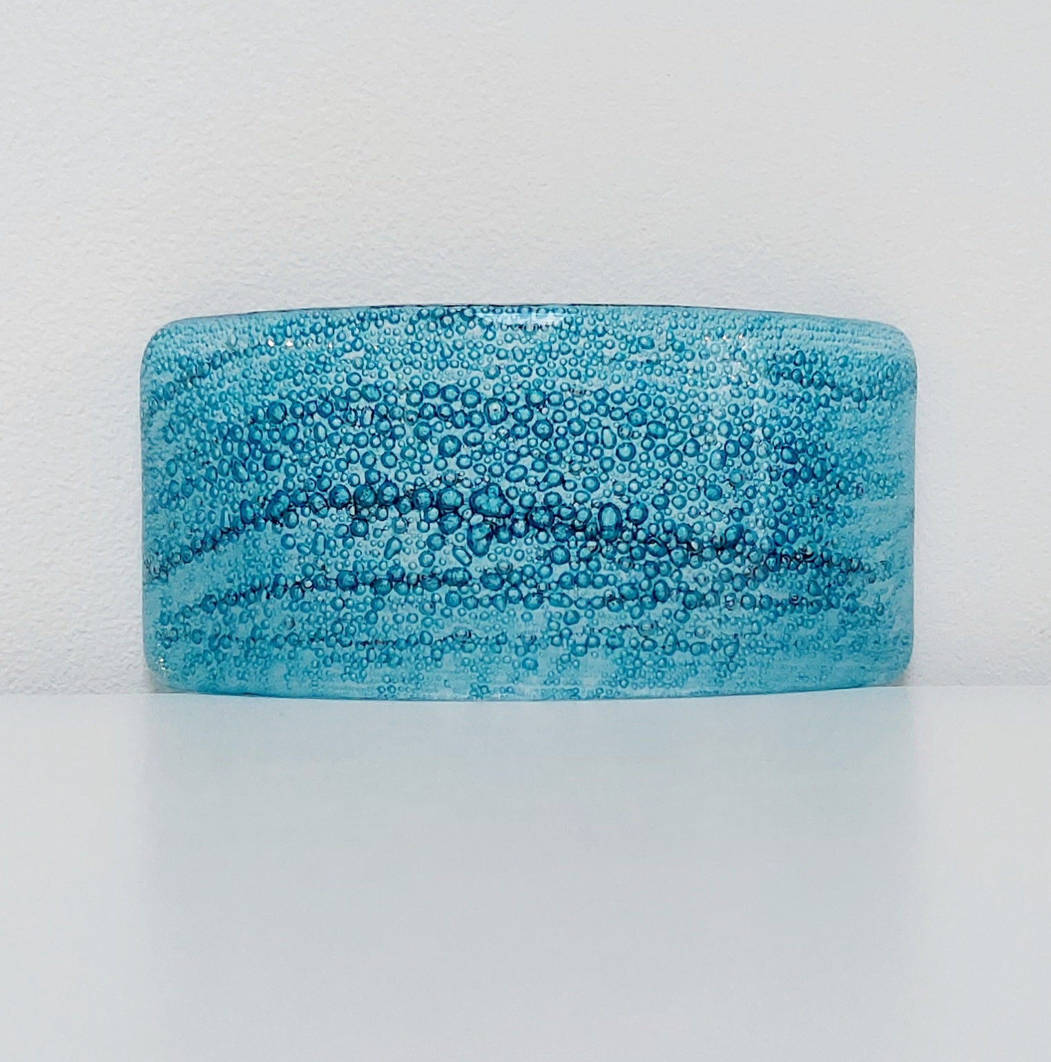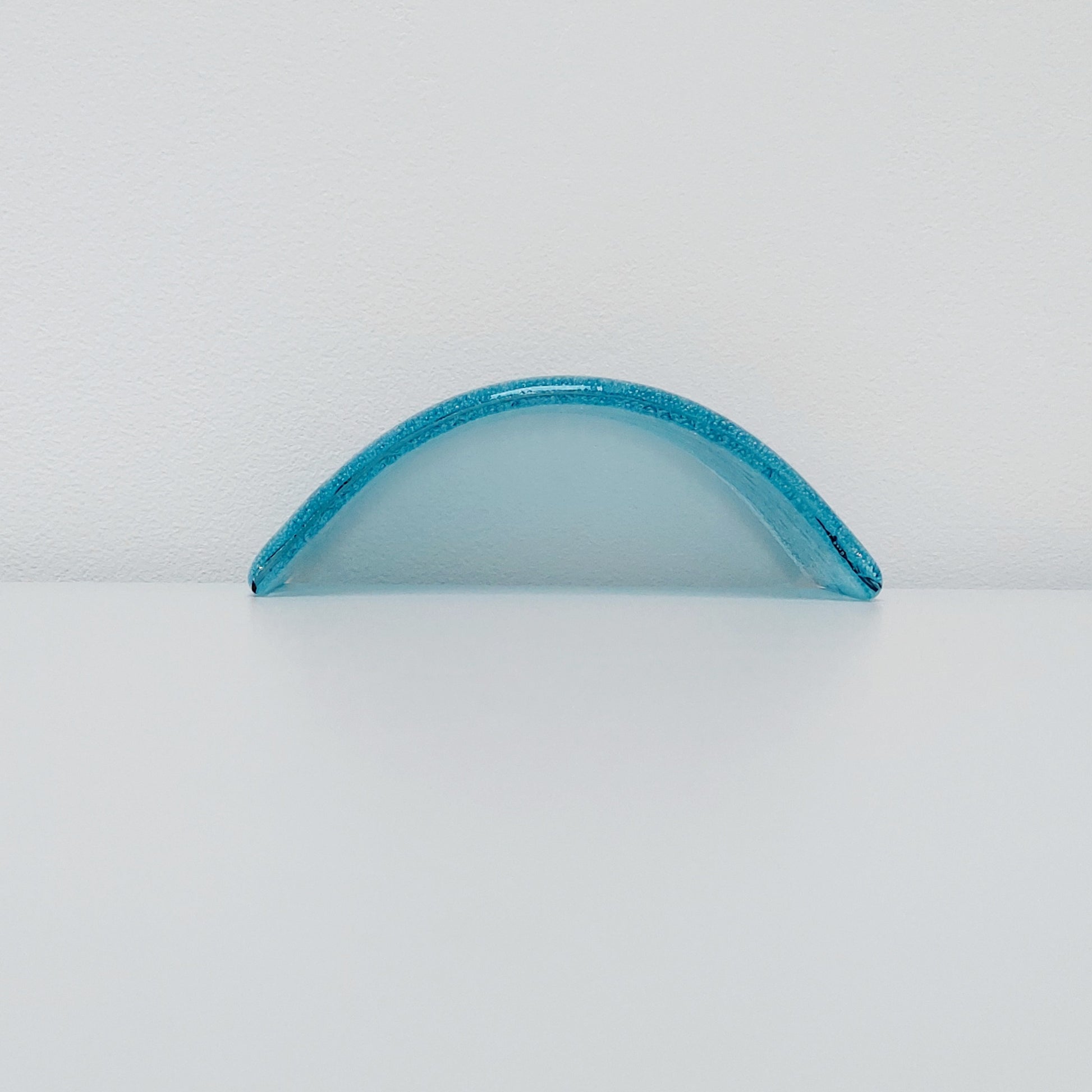 A turquoise fused glass curve with sea green undertones.