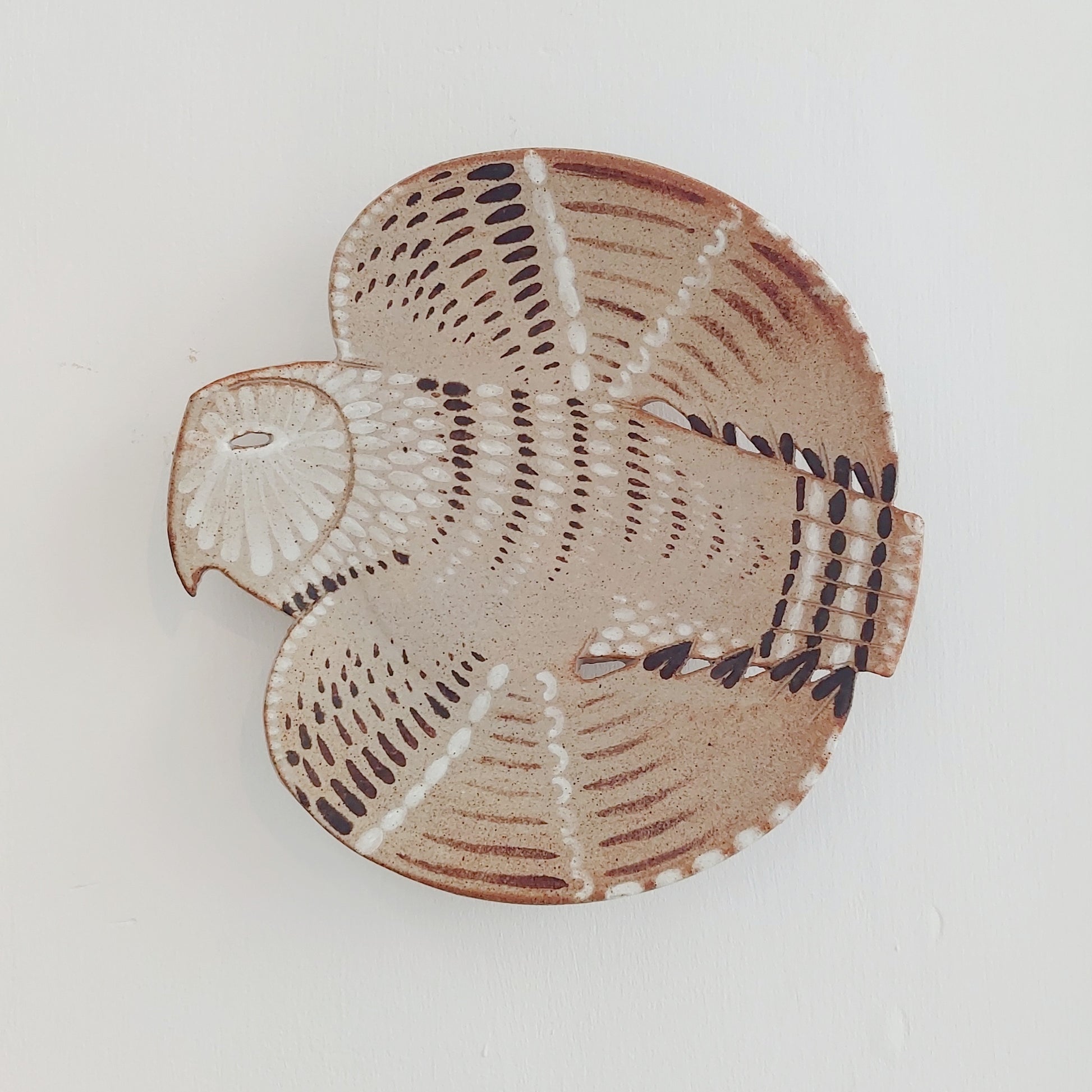 A unique owl wall hanging handcrafted by local potter Hans Ullrich.