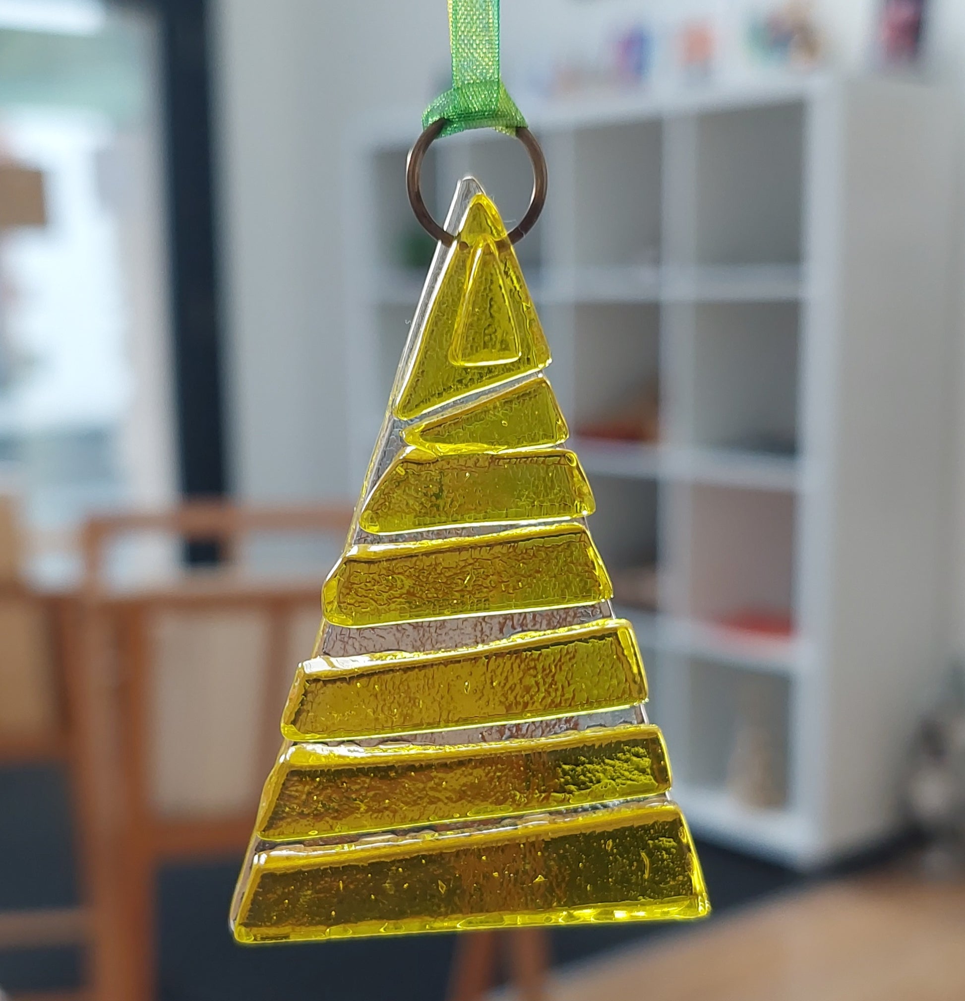 3 glass trees: transparent yellow, sunshine yellow and turquoise