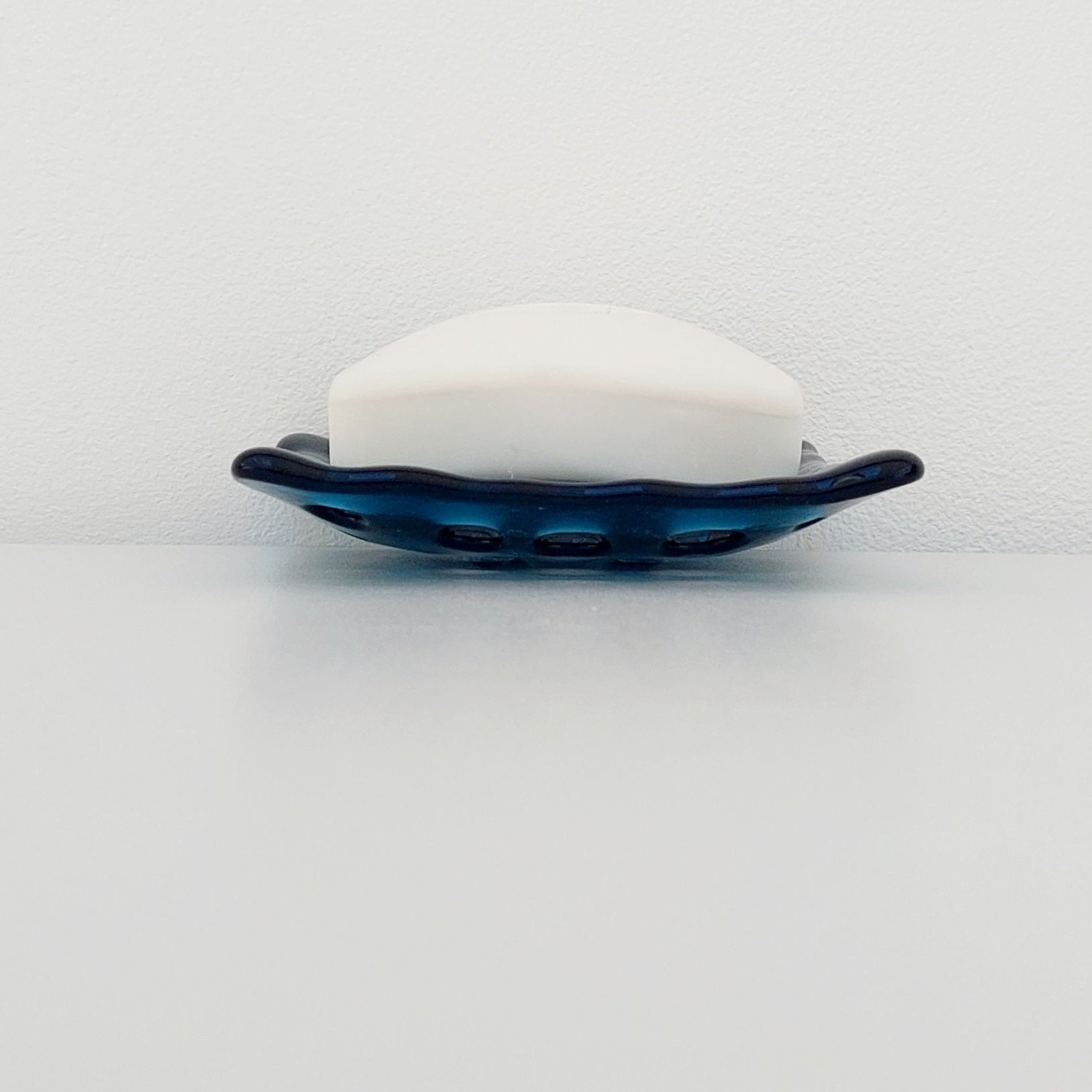 Sea Blue Glass Soap Dish with Holes