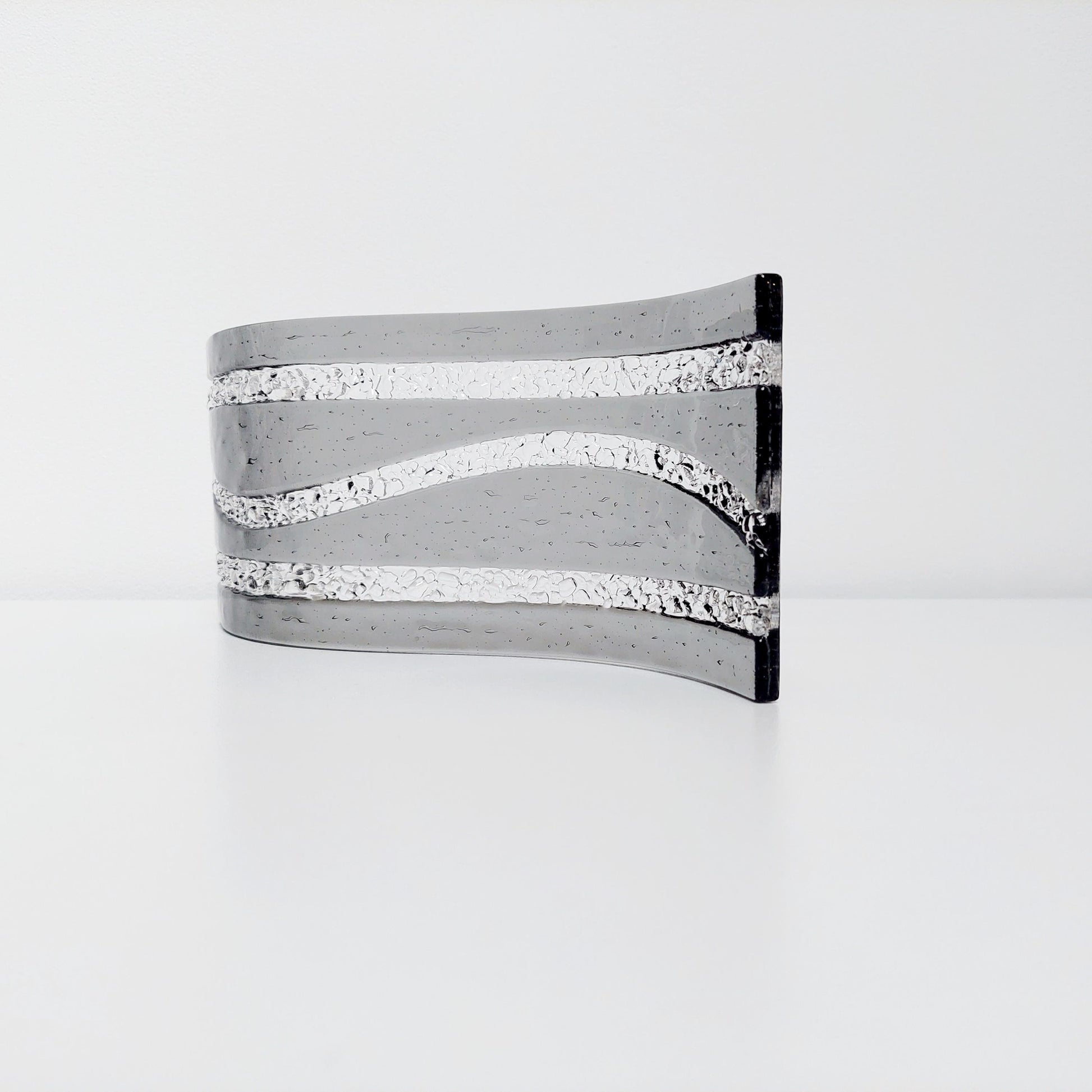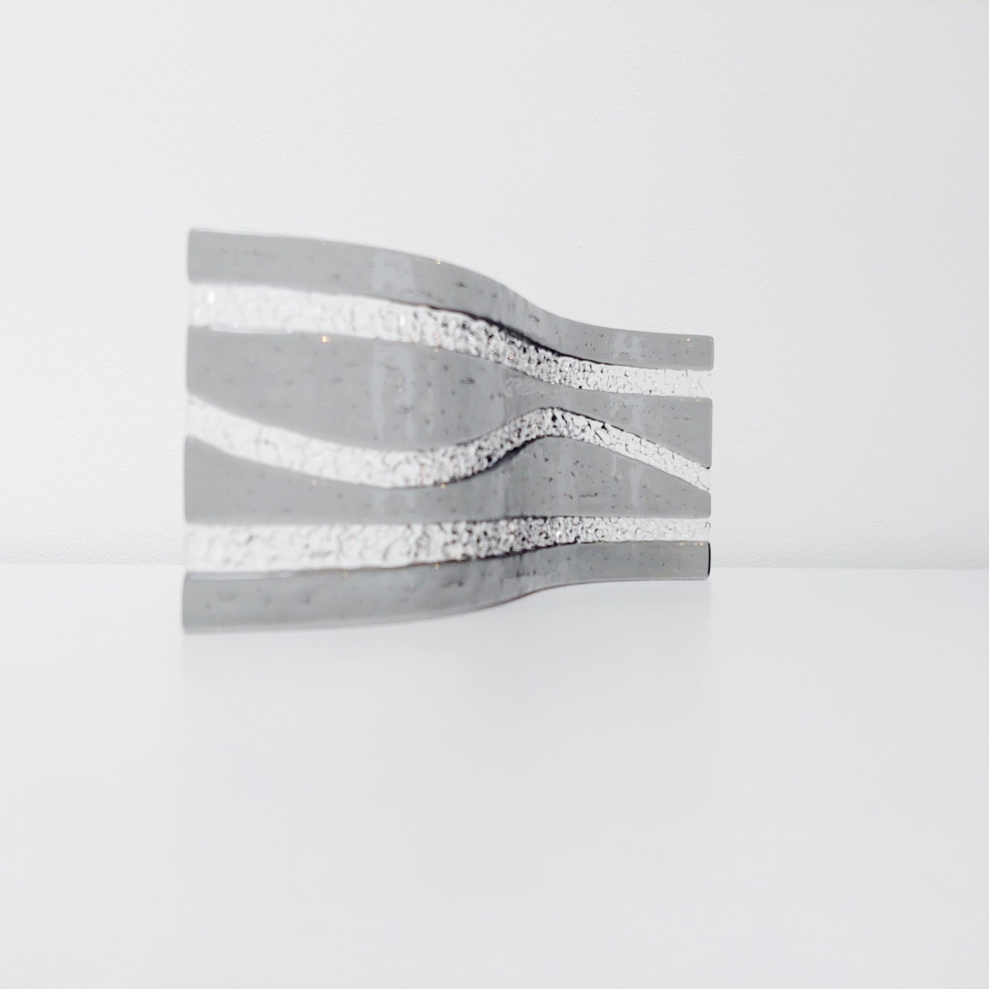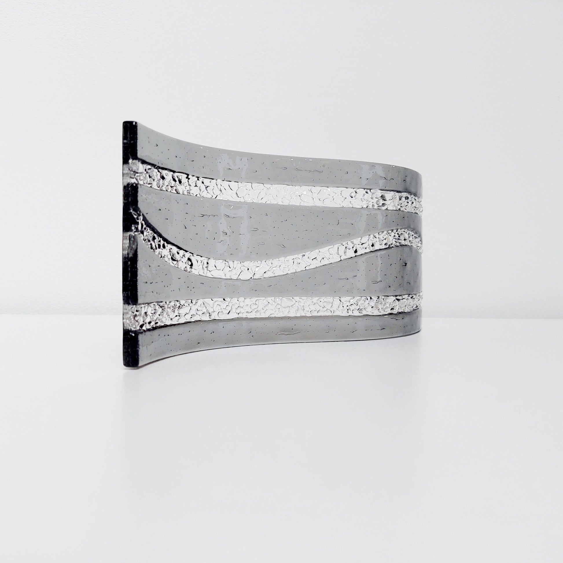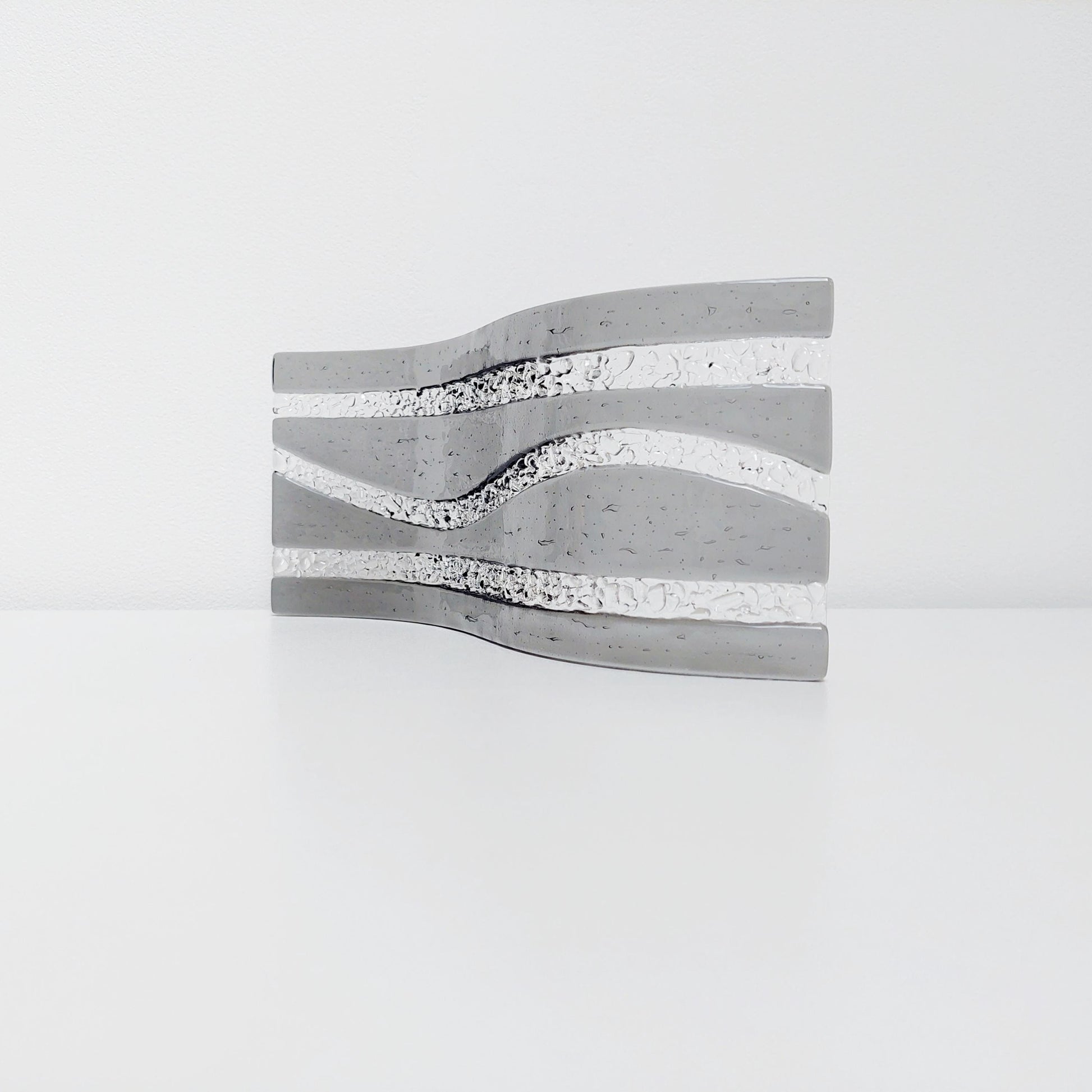 Silver Grey Glass Art Wave, Monochrome Mantlepiece Ornament