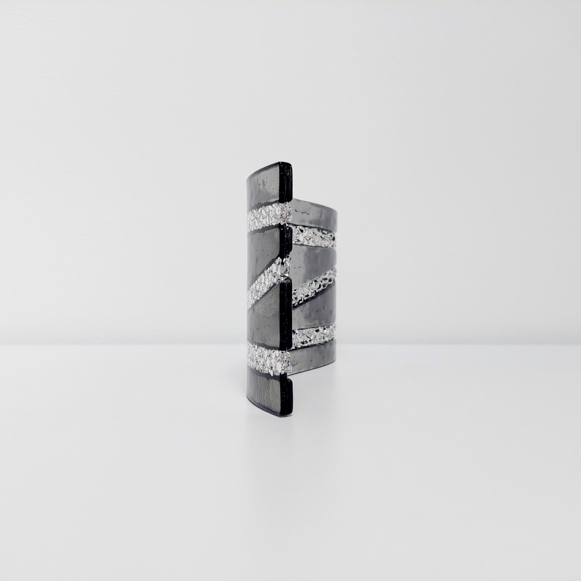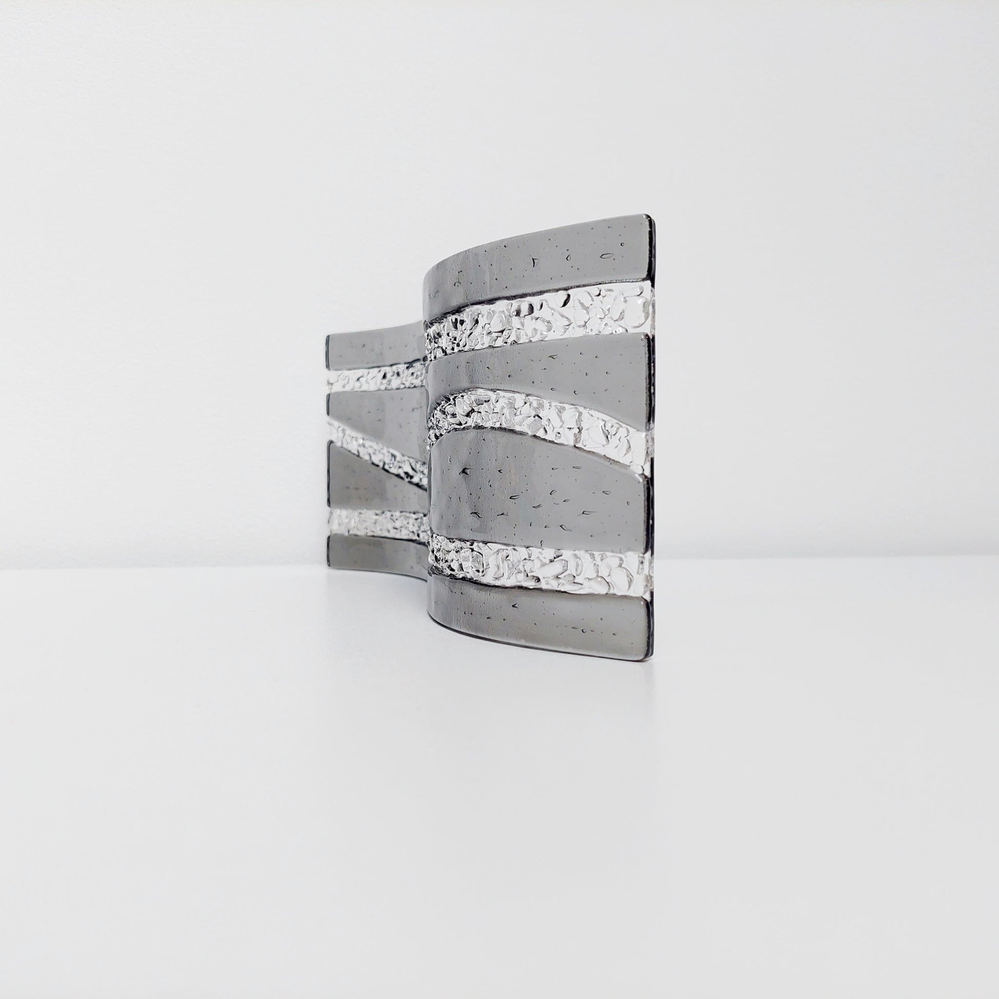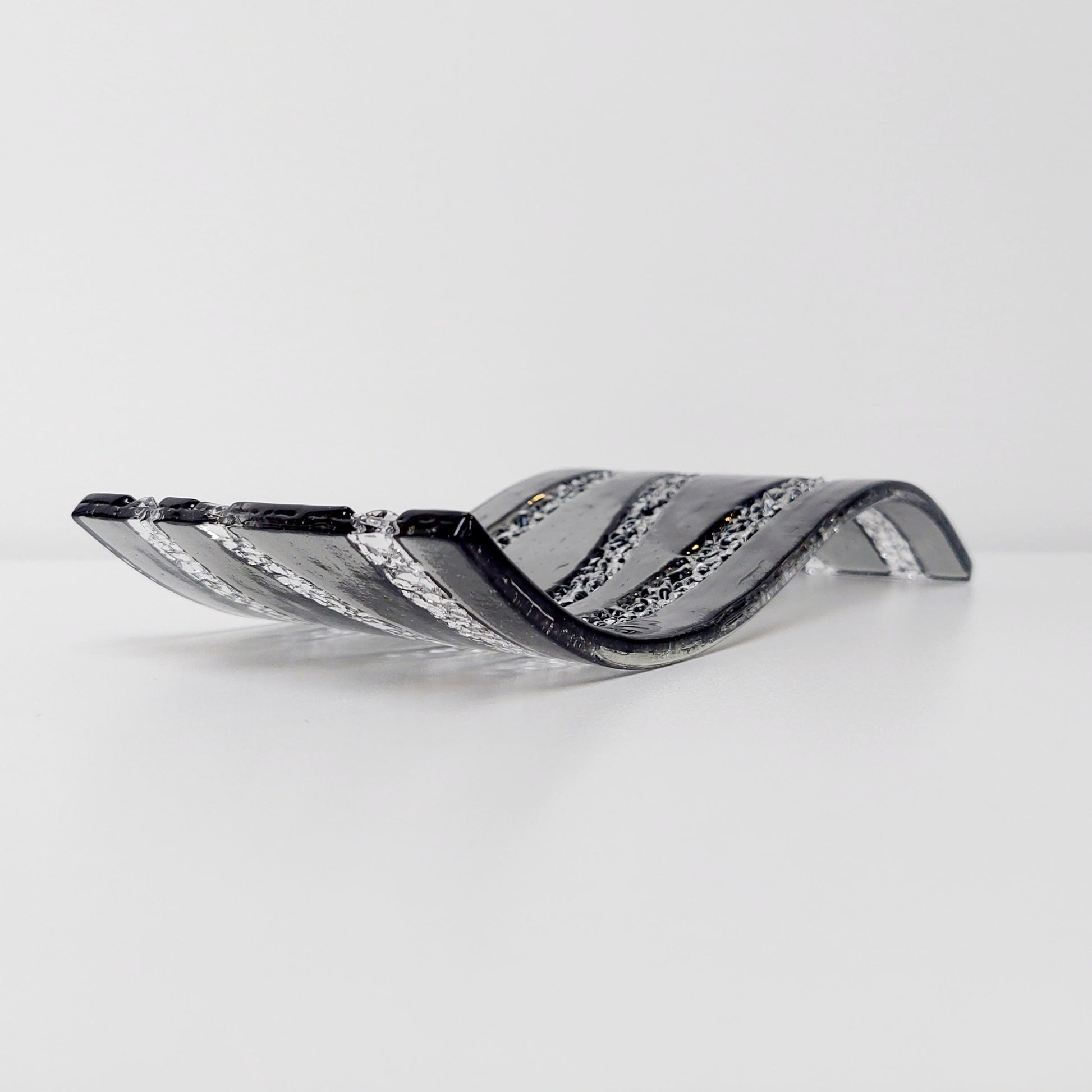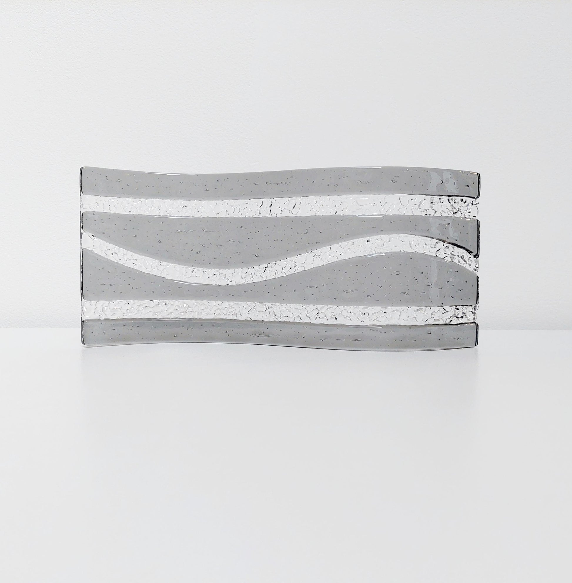 Silver Grey Glass Art Wave, Monochrome Mantlepiece Ornament