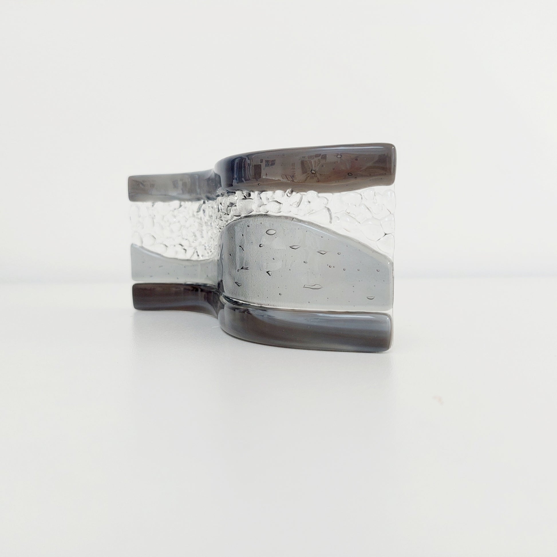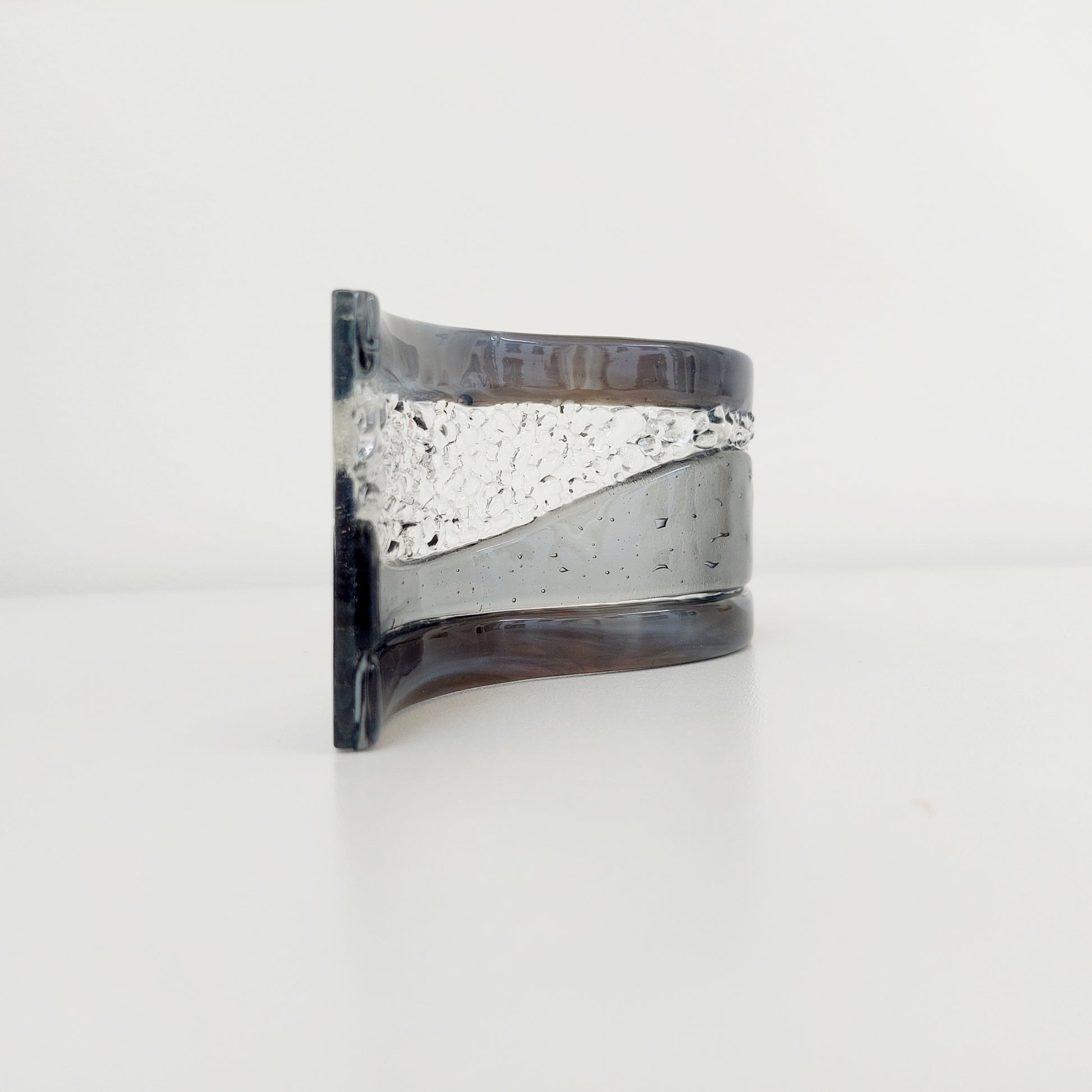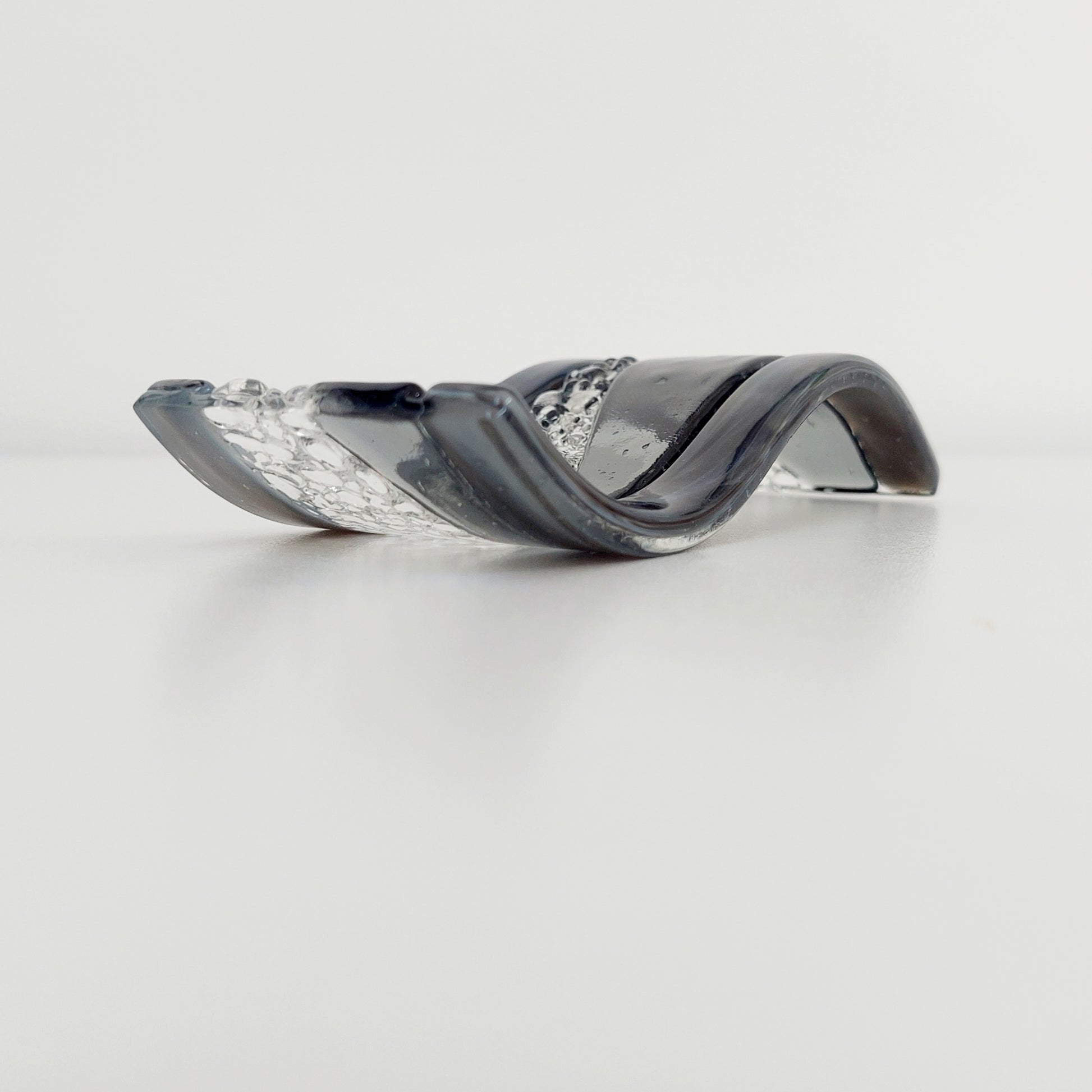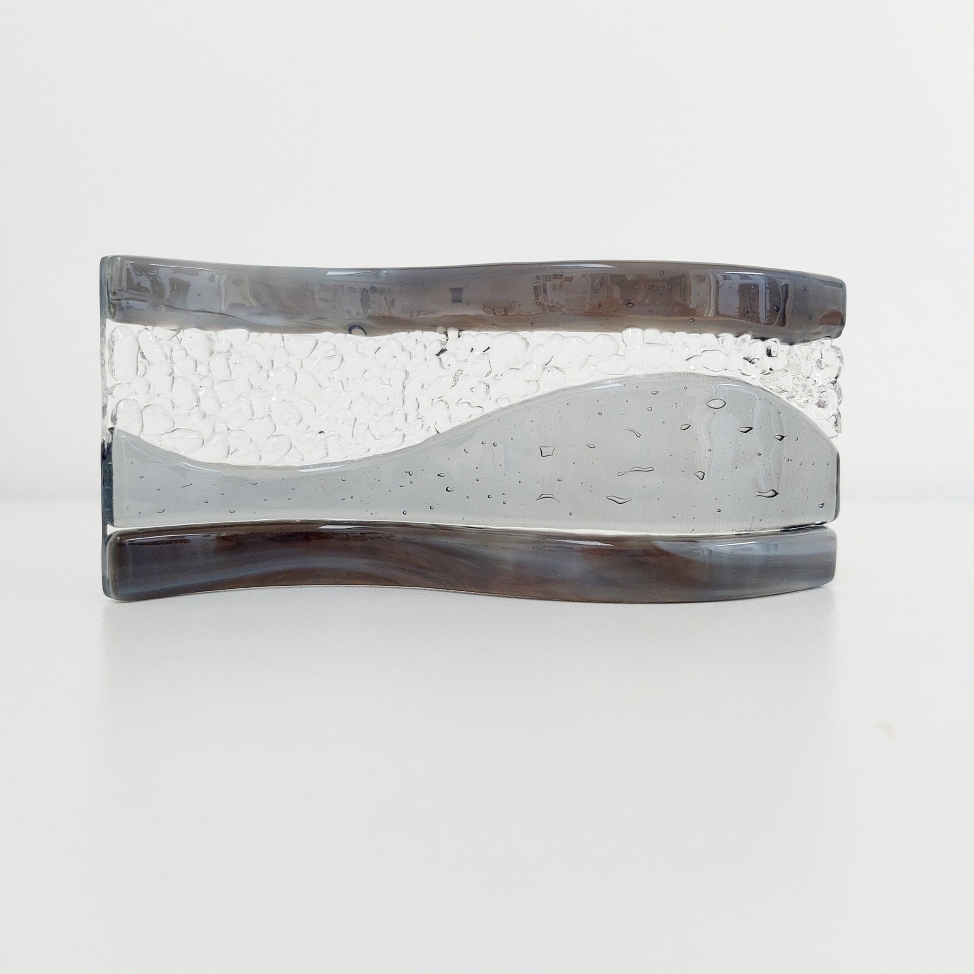 Small Grey Glass Wave Ornament, Monochrome Decor