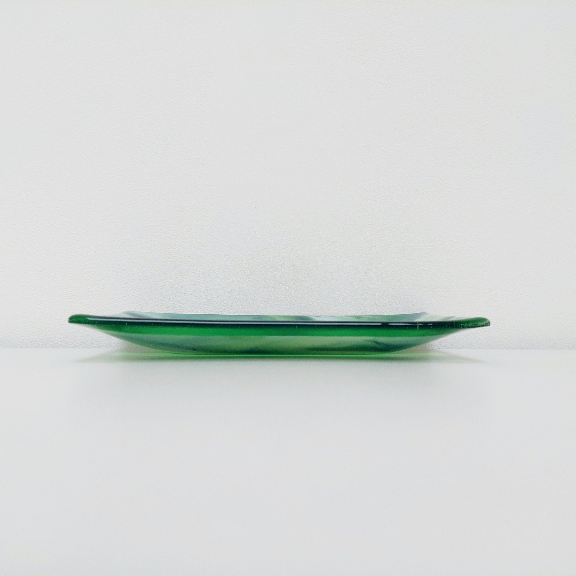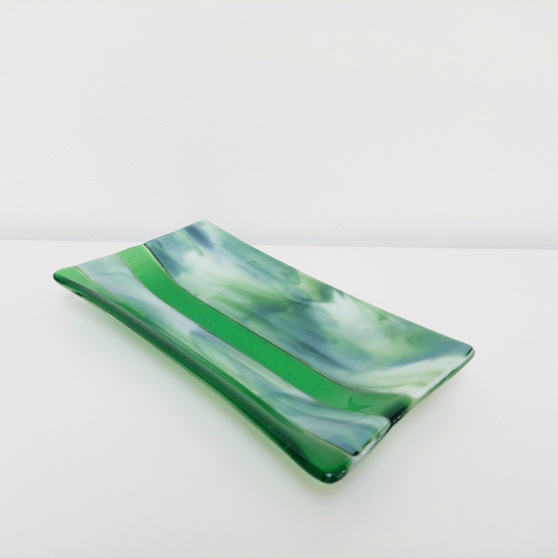 Spring in the Lakes Green Glass Art Plate, Handmade Fused Glass Decorative Tray