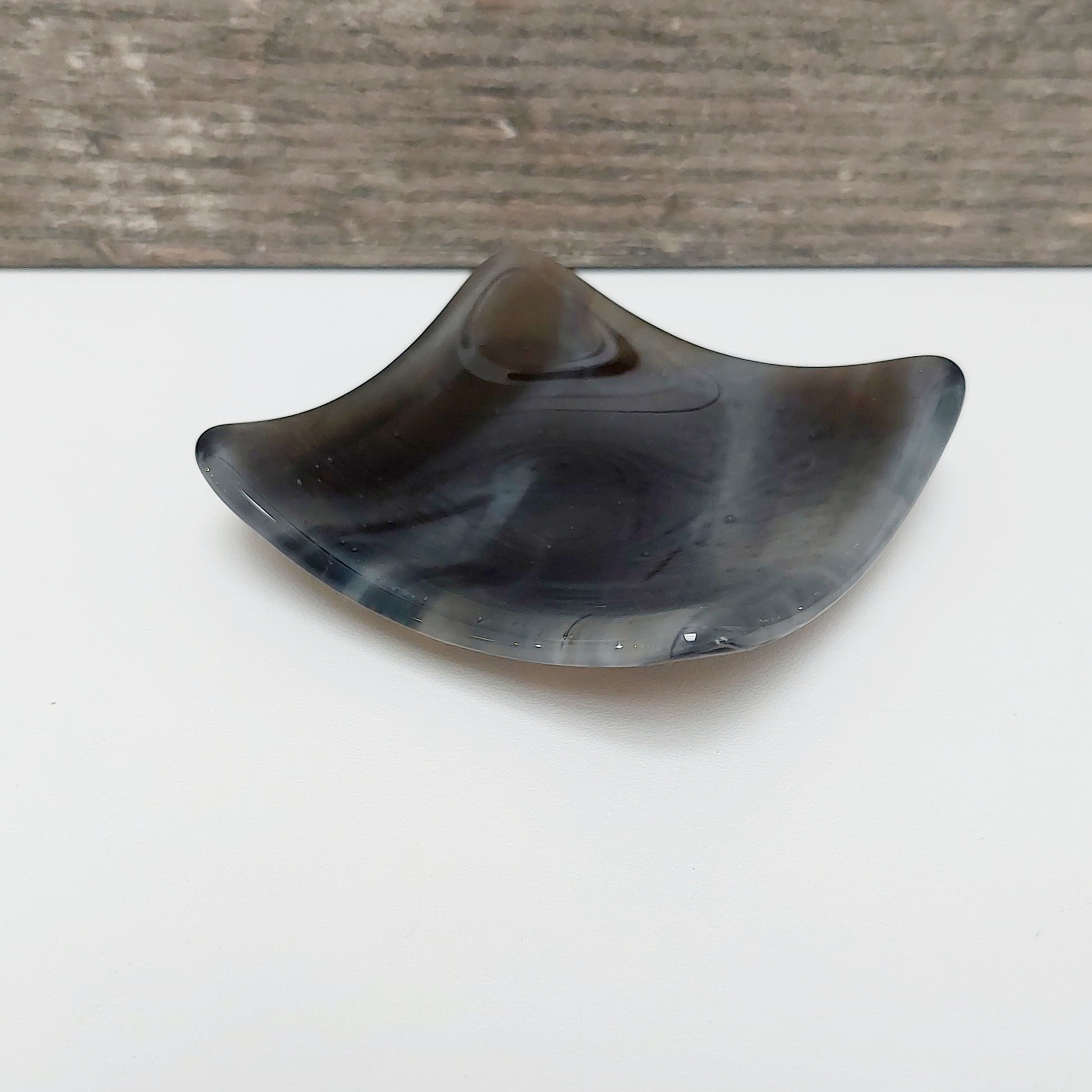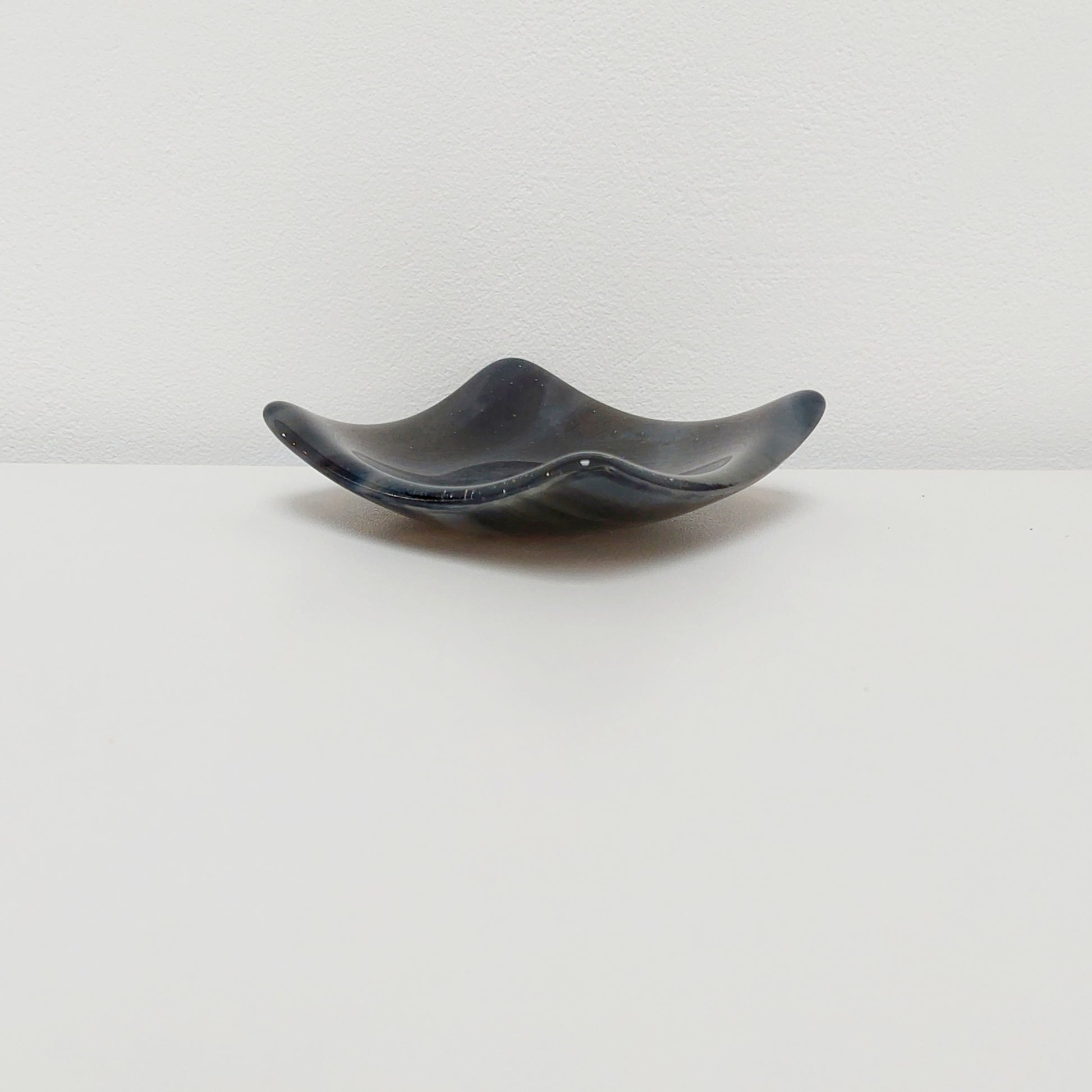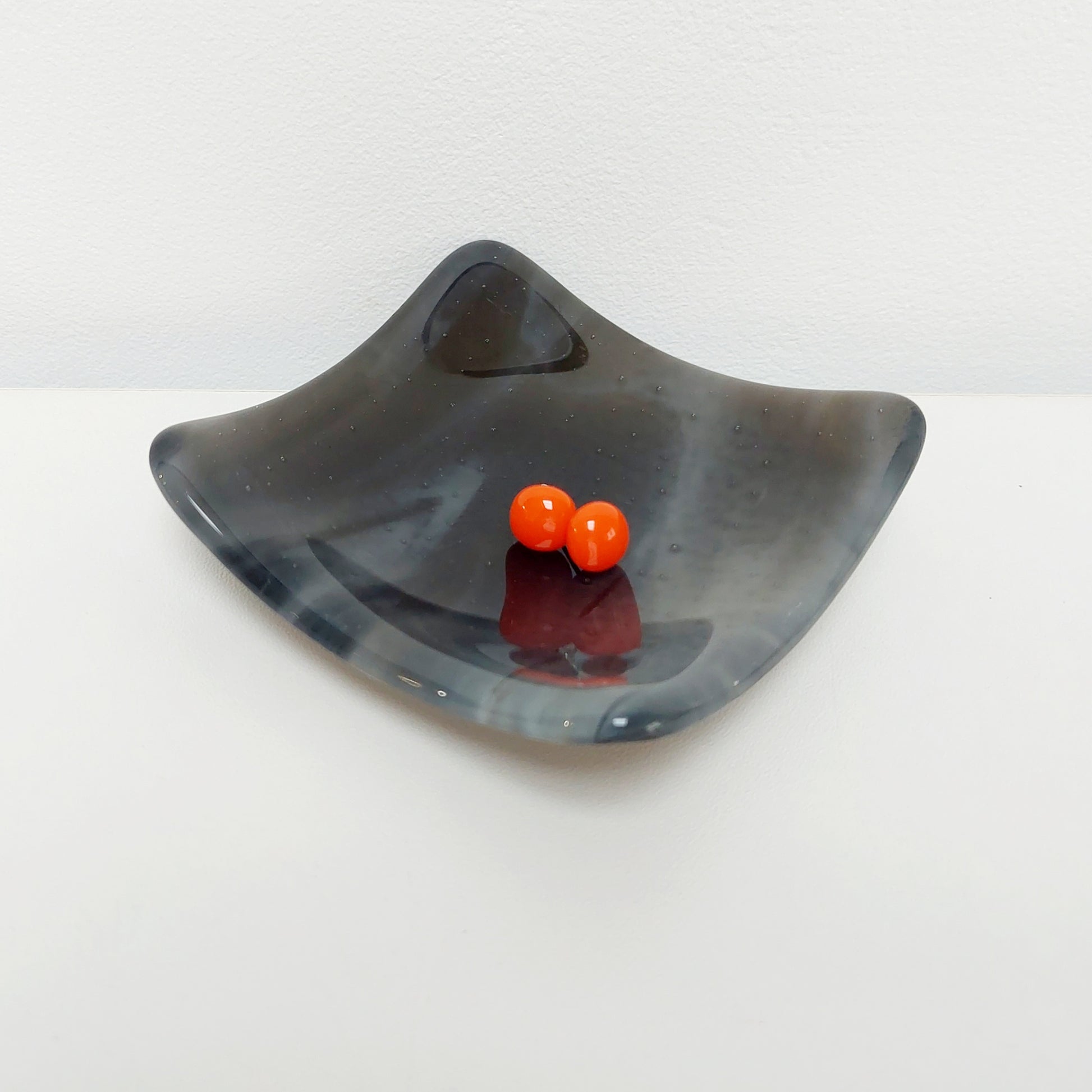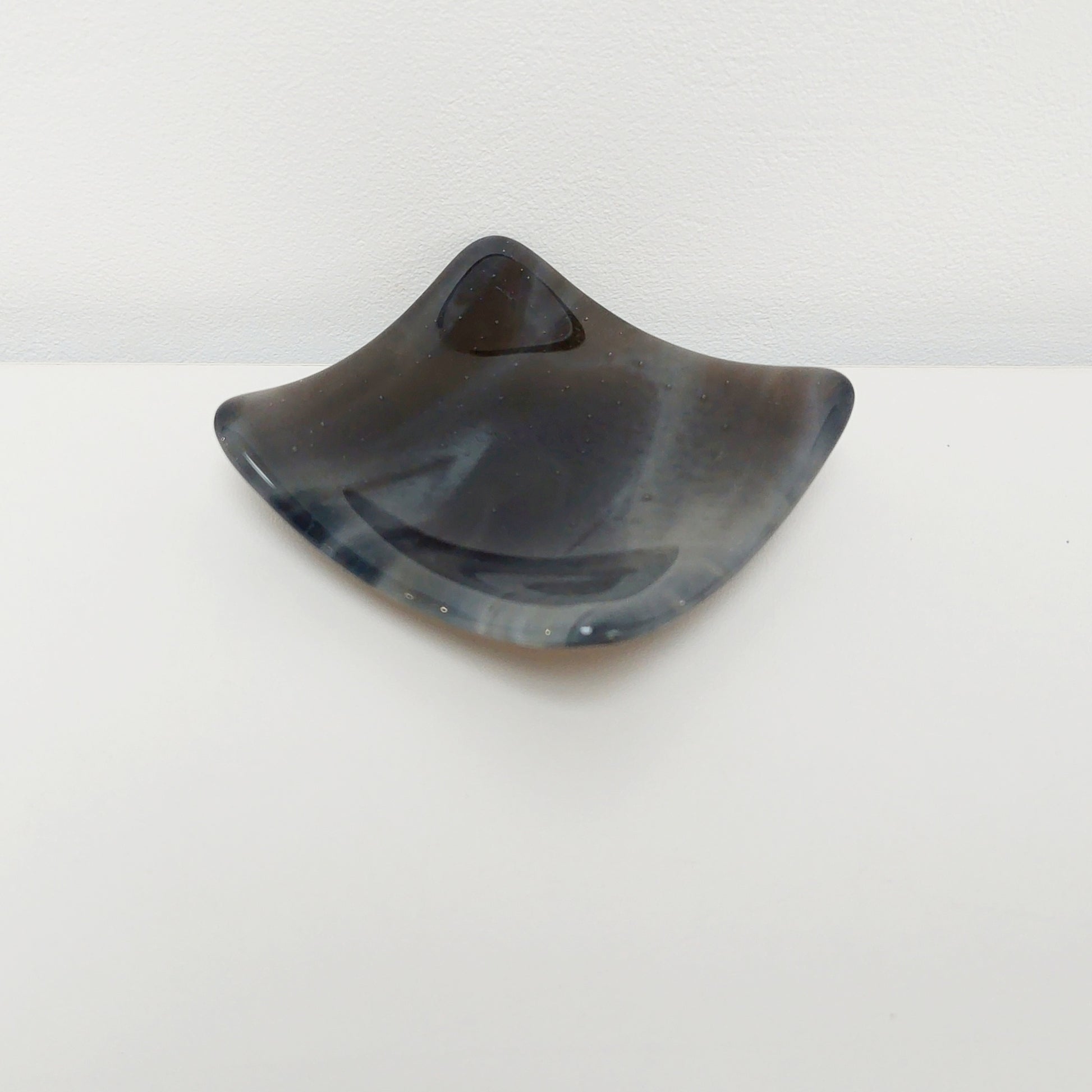 The dish was handmade from blended charcoal grey and light grey artisan glass.