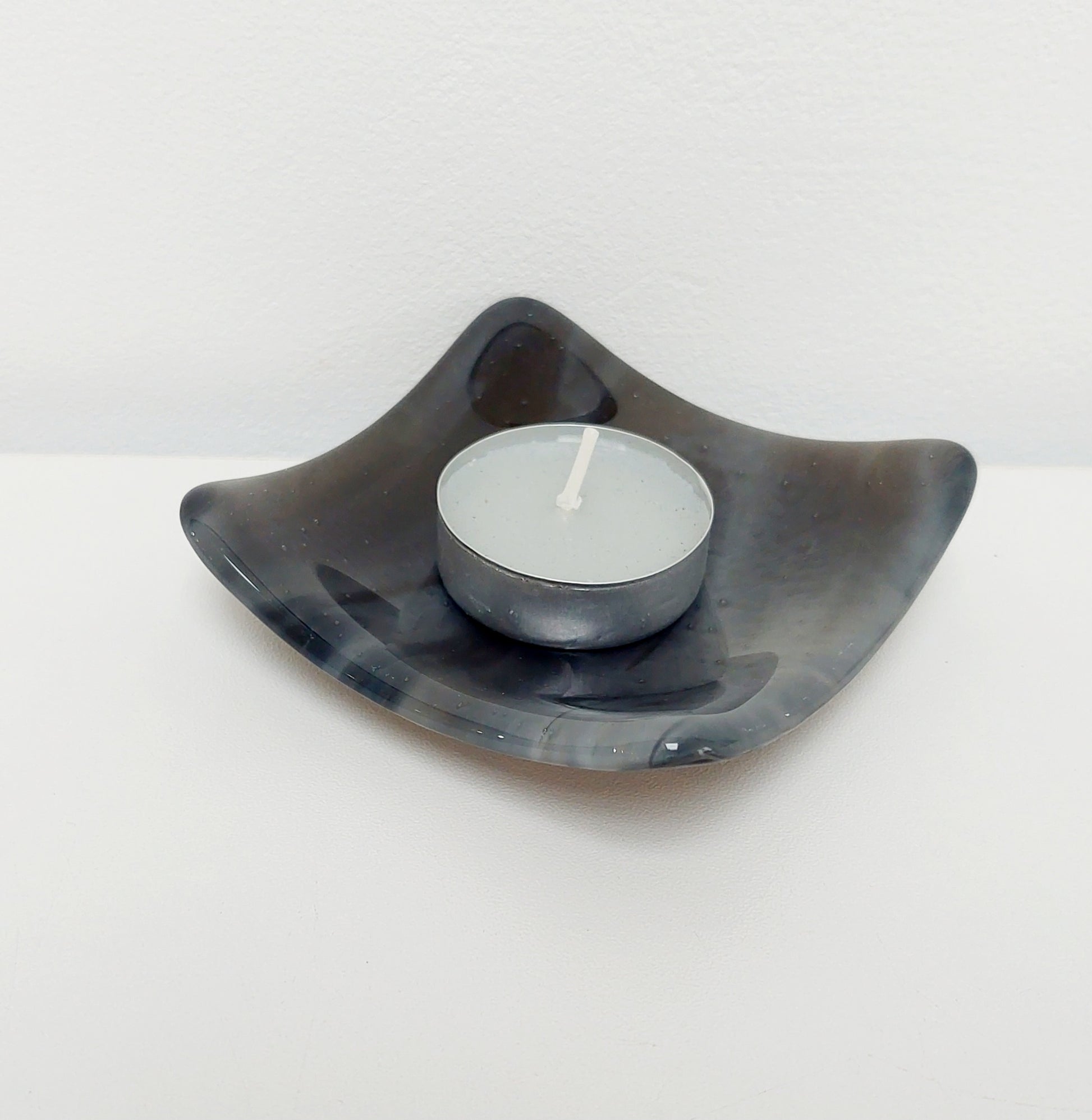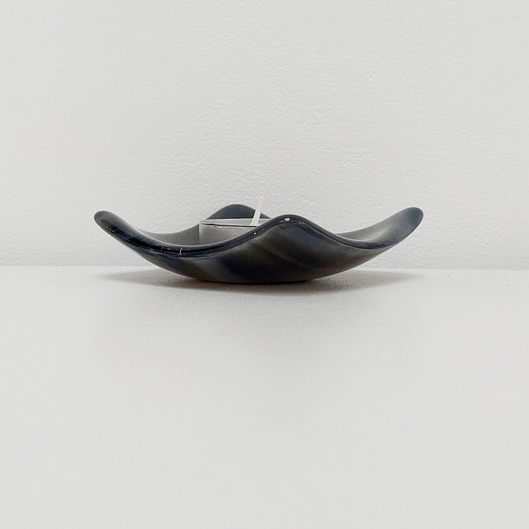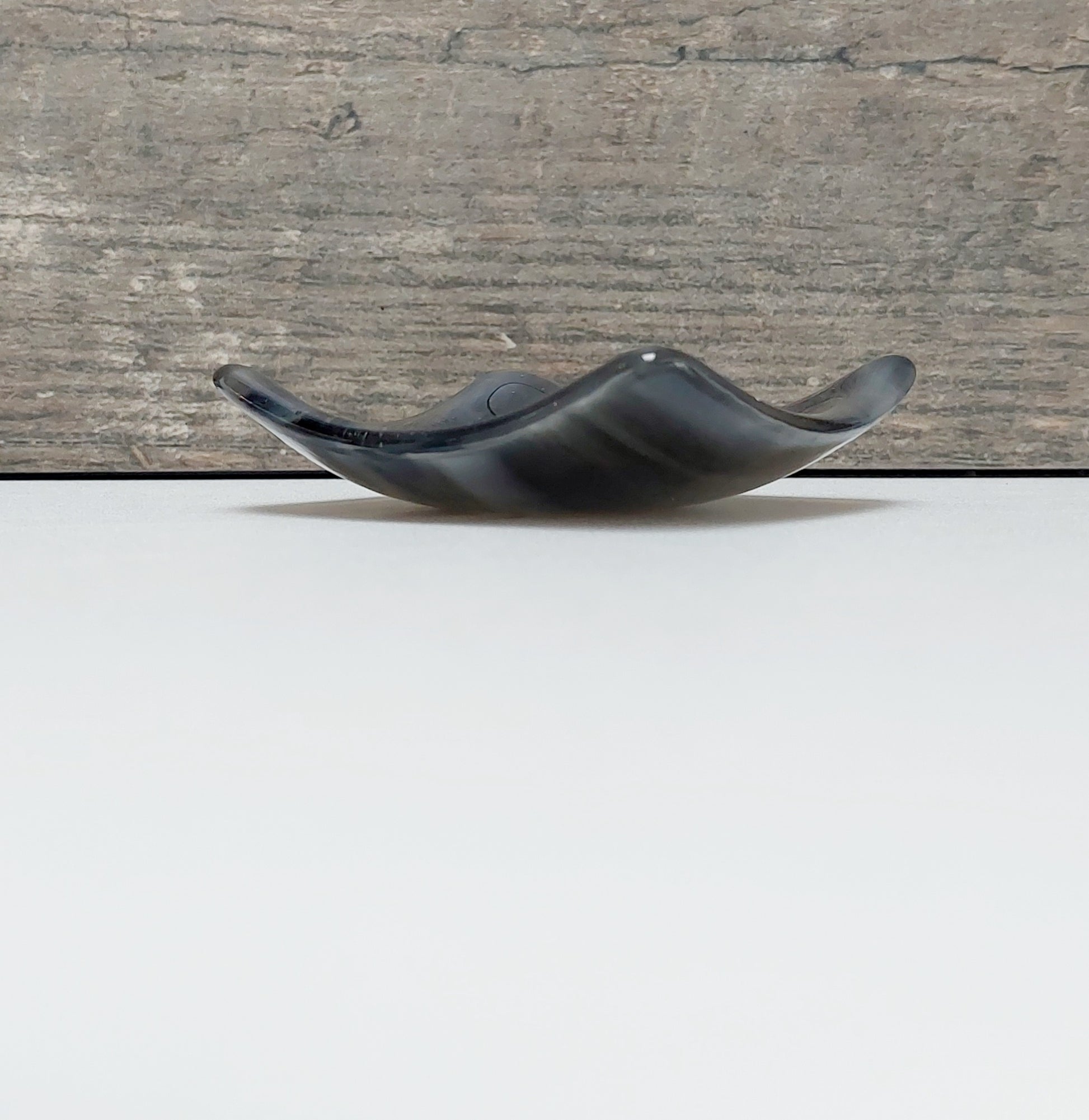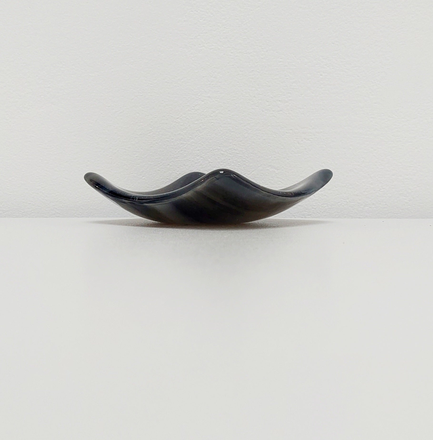 The dish was handmade from blended charcoal grey and light grey artisan glass.