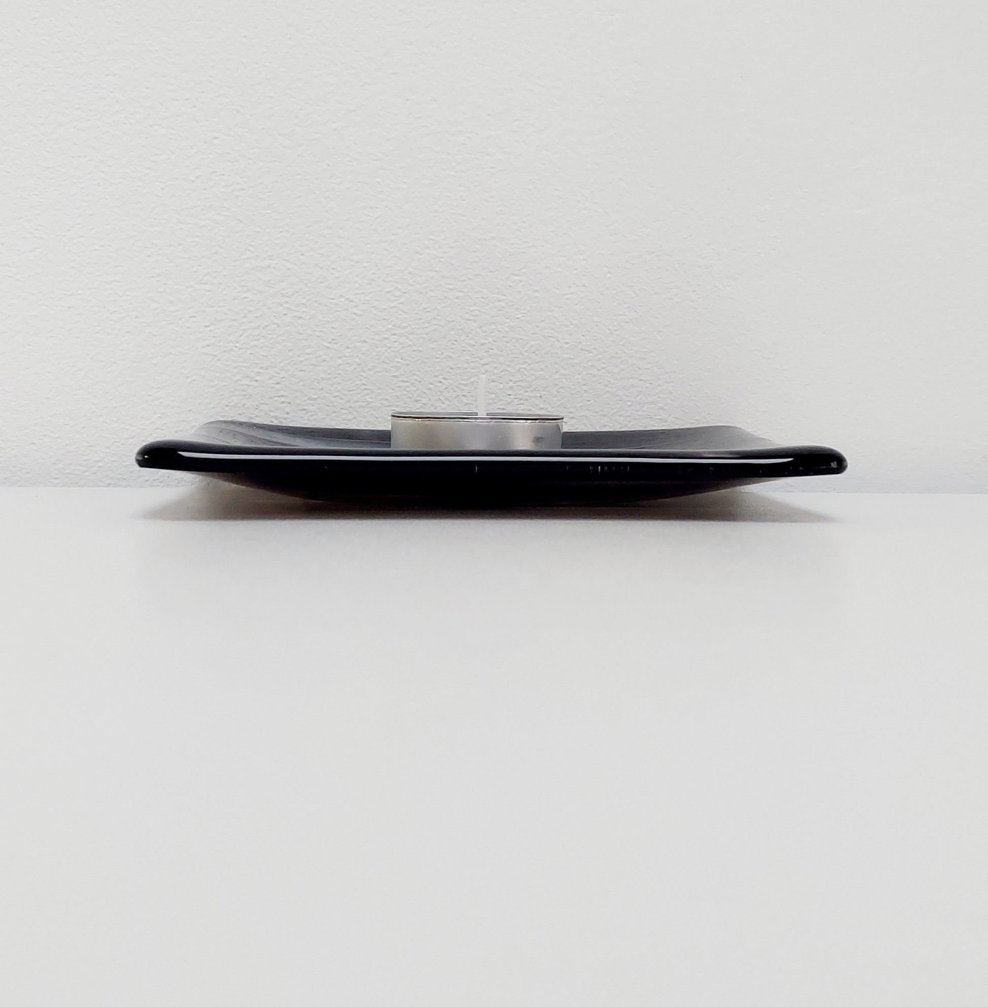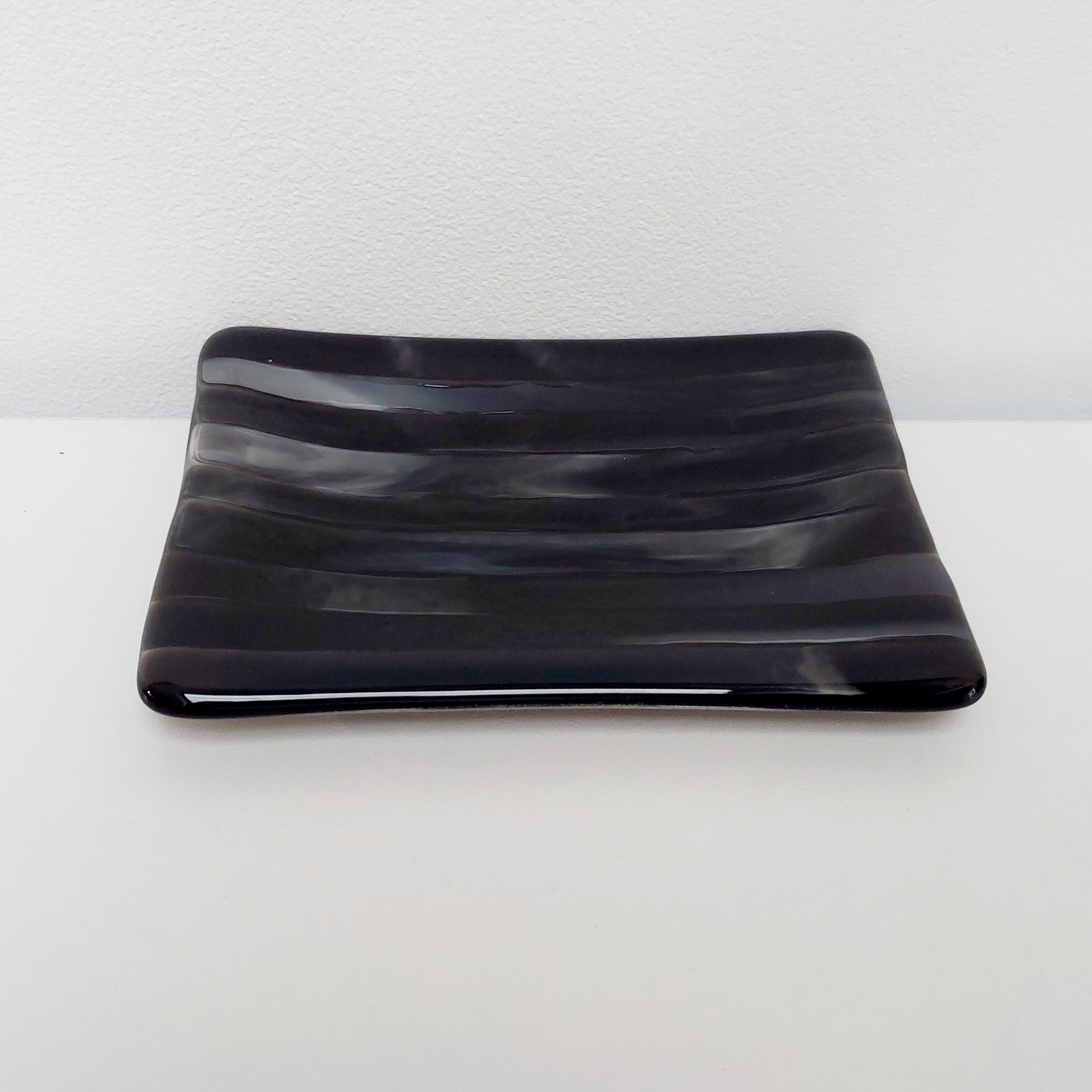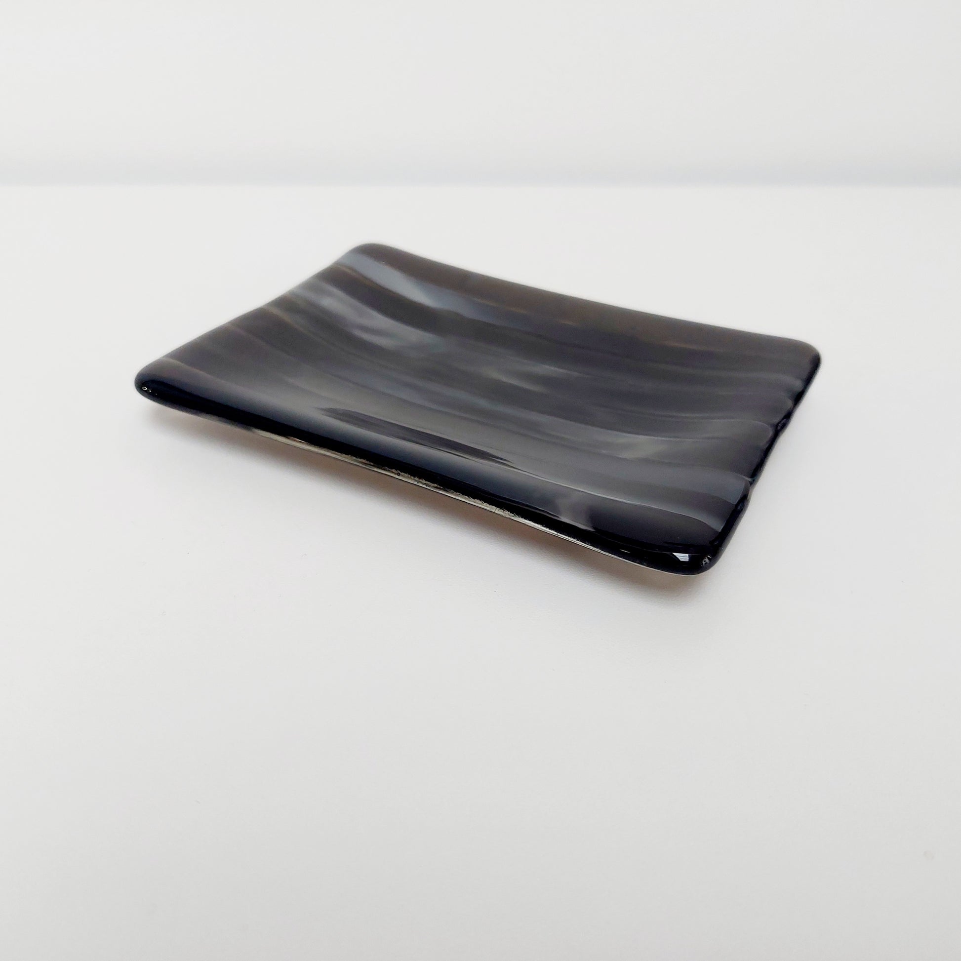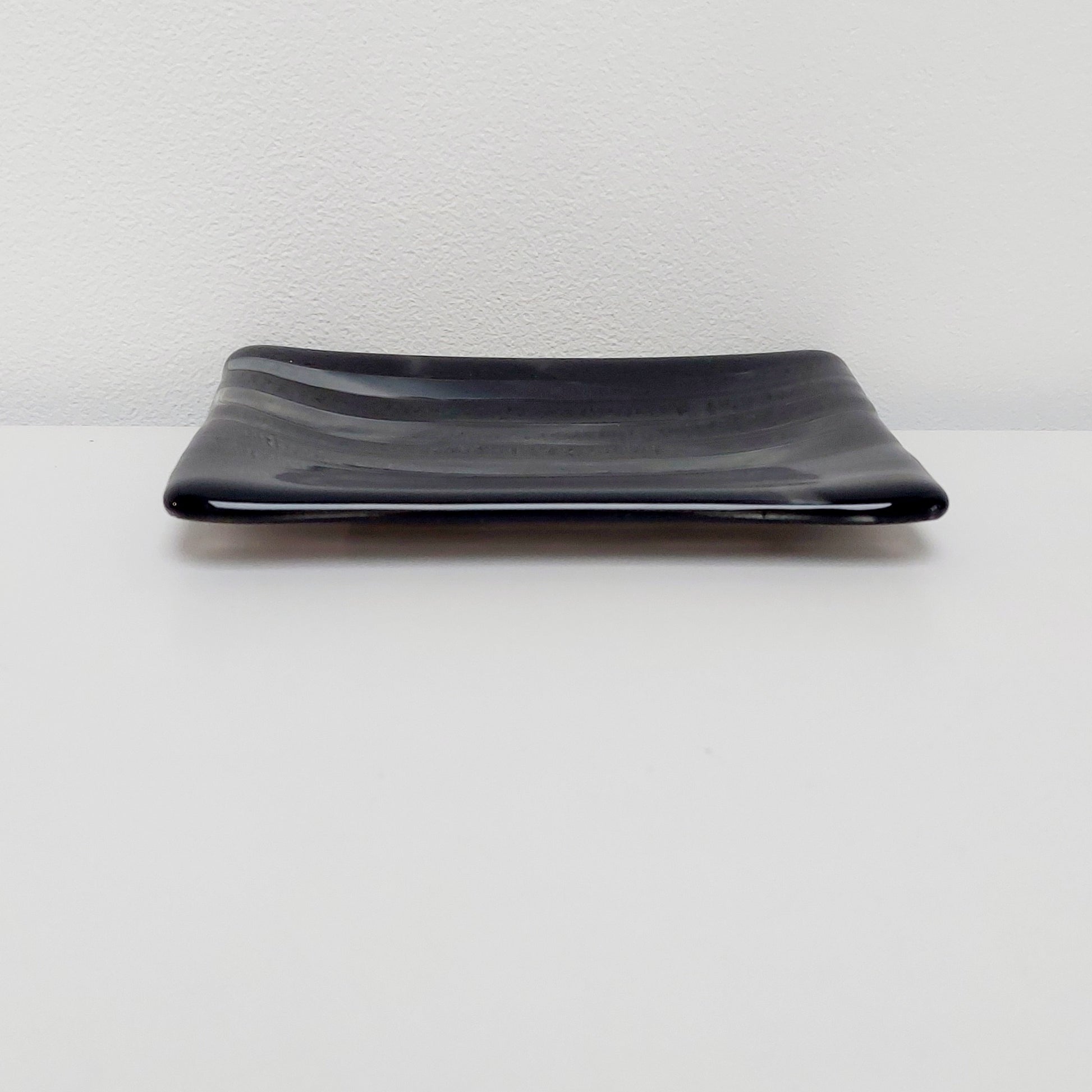 The small dish was handmade from charcoal and light grey opalescent glass.