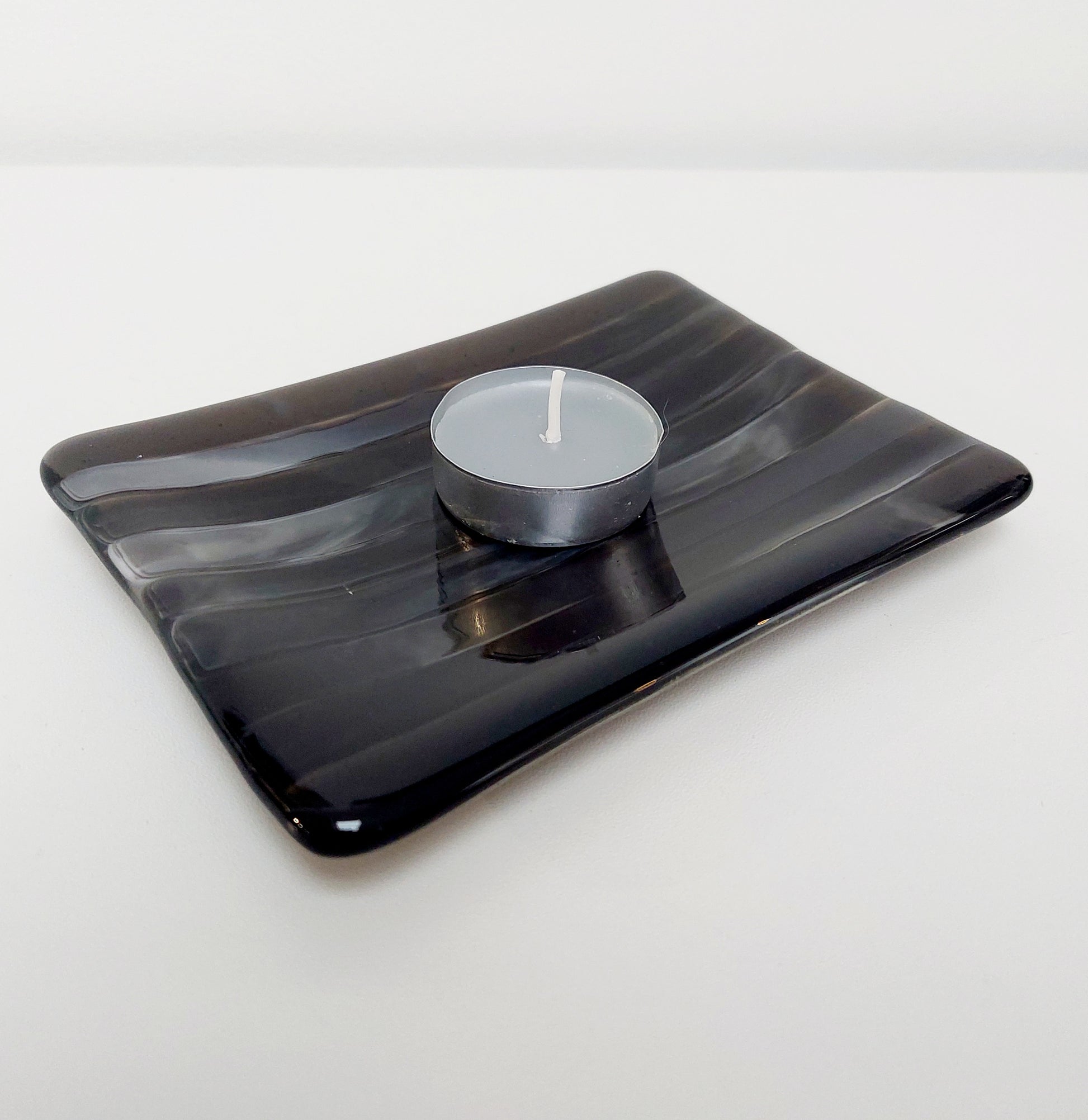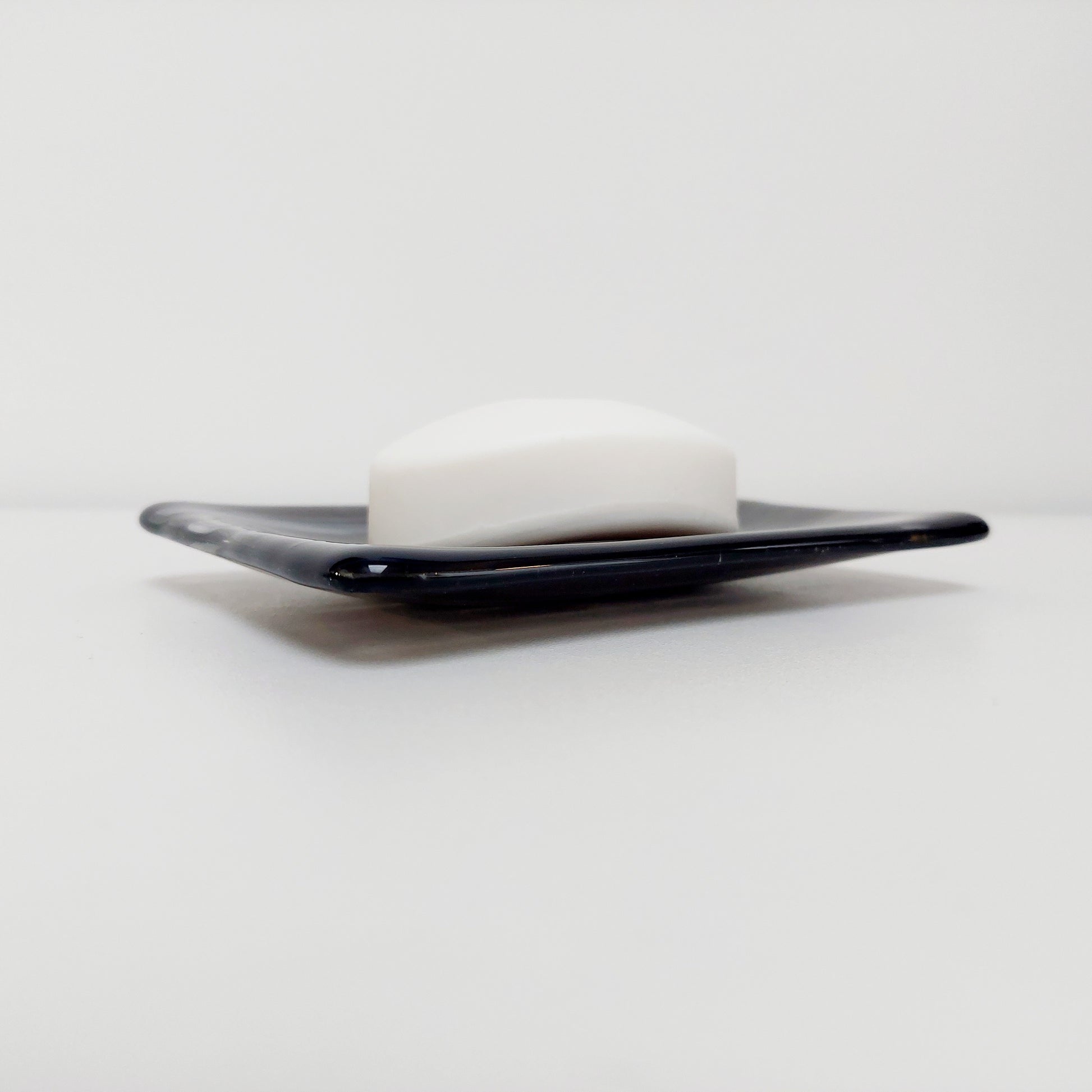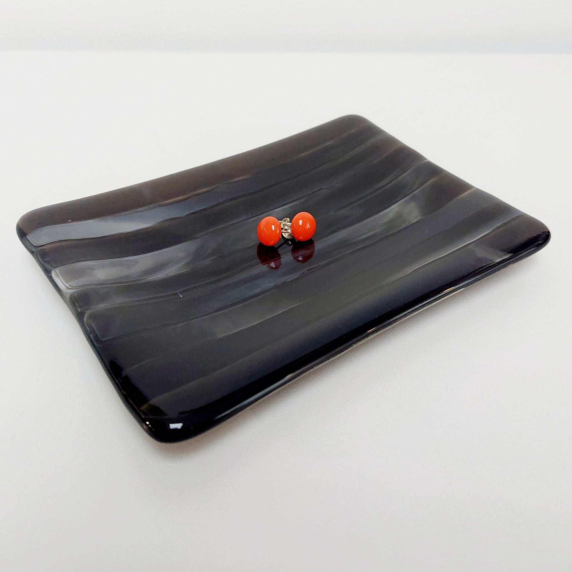 The small dish was handmade from charcoal and light grey opalescent glass.
