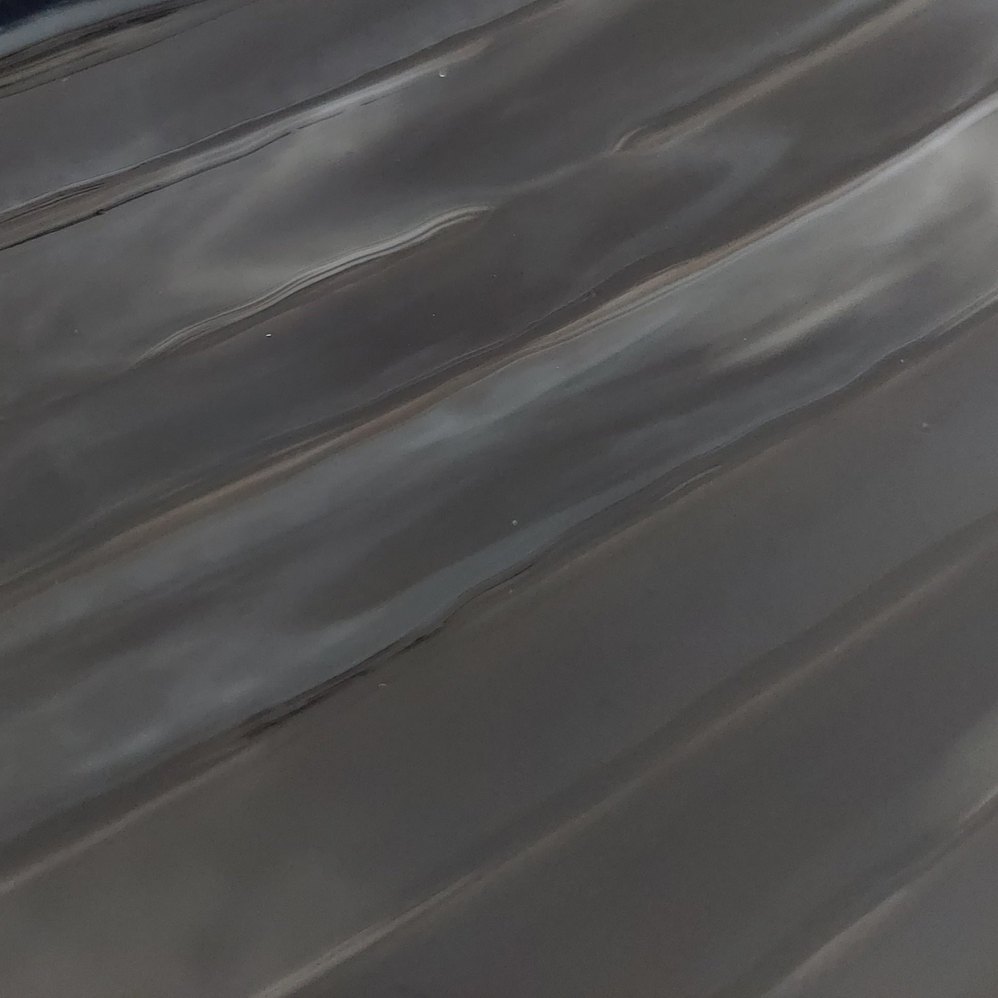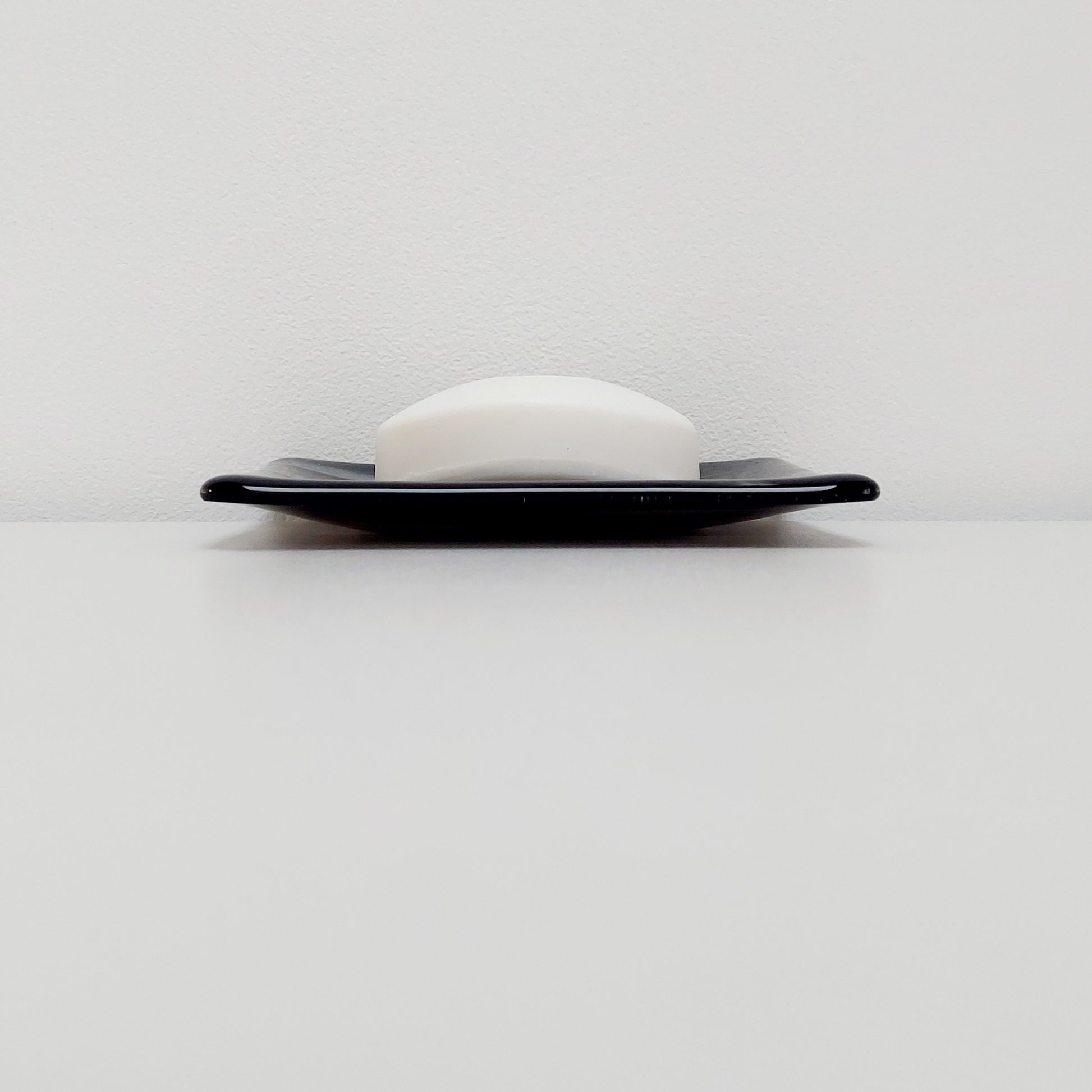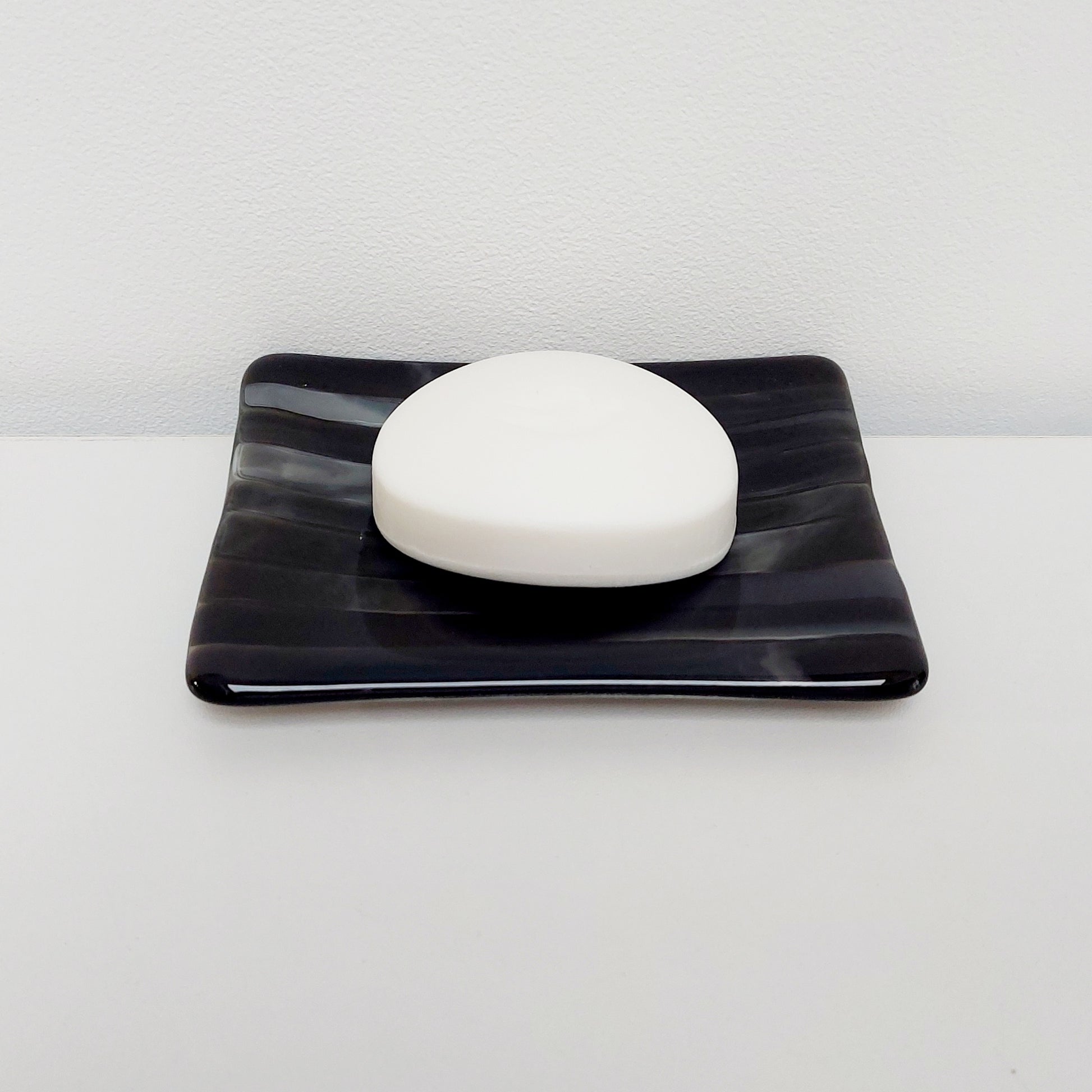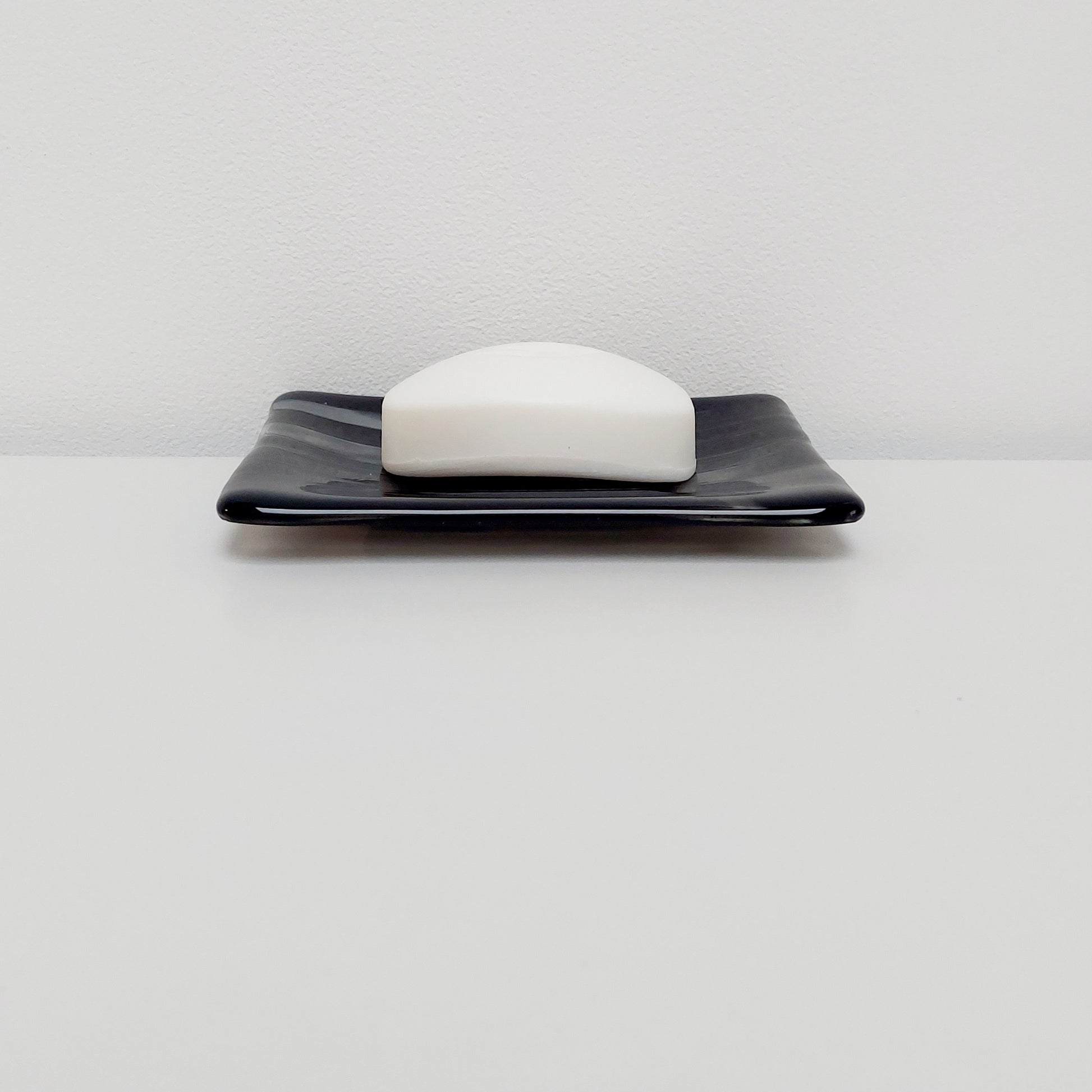 The small dish was handmade from charcoal and light grey opalescent glass.