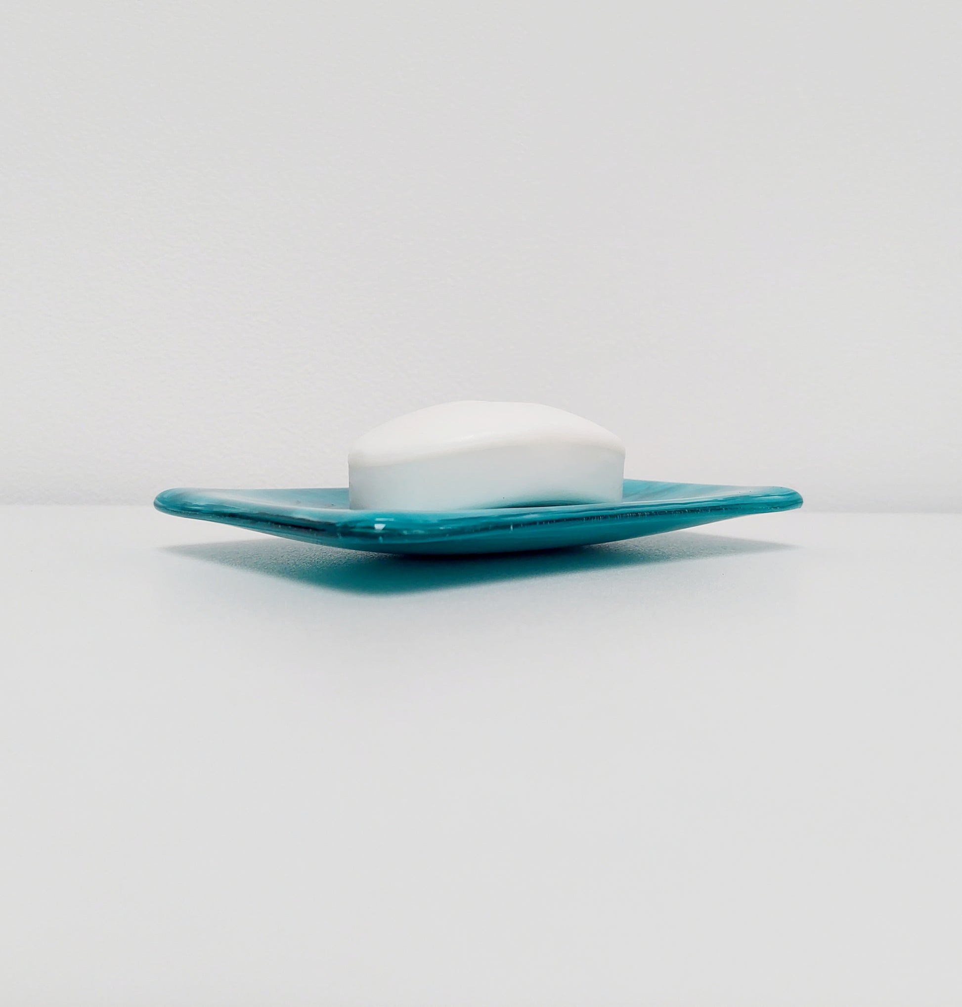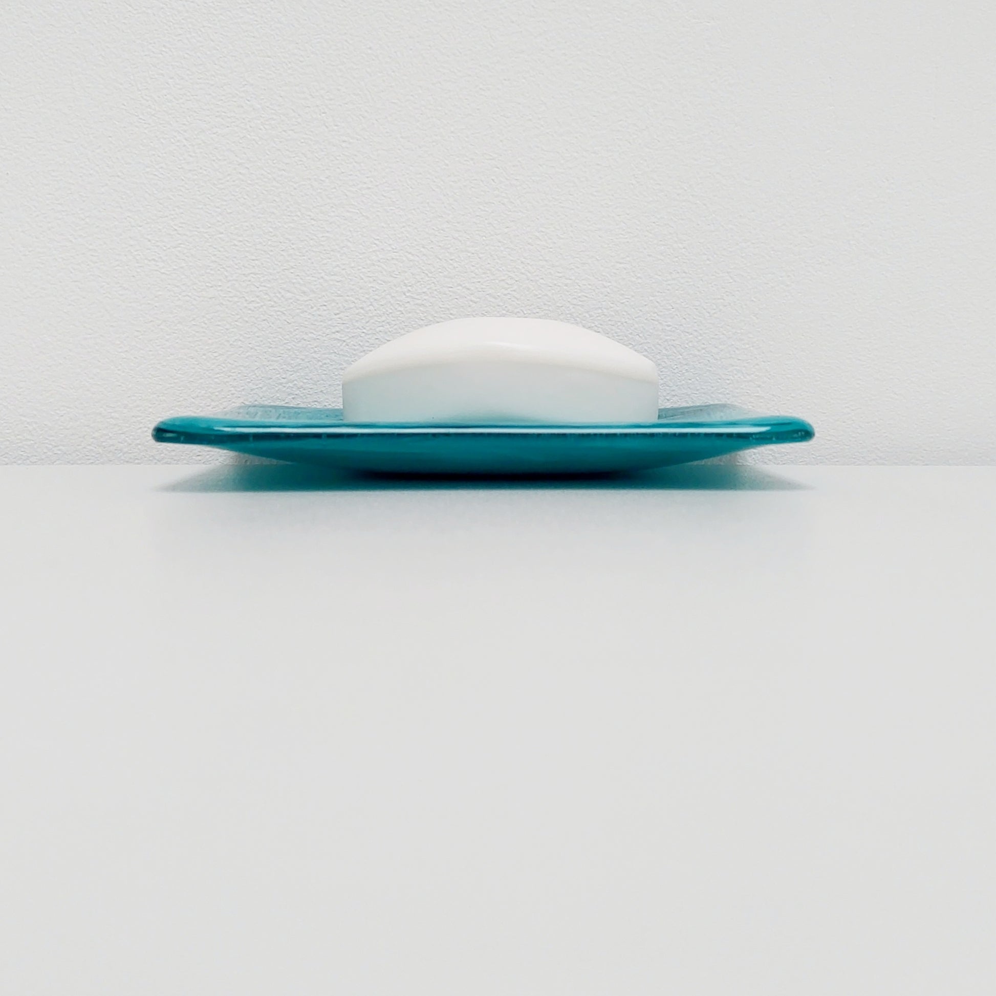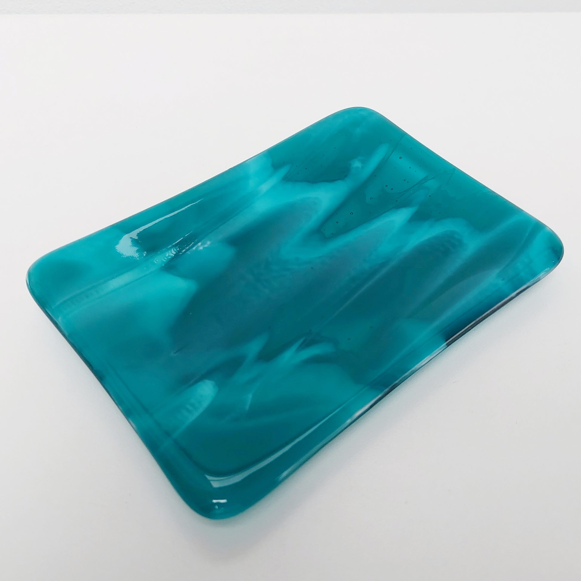 Teal Fused Glass Trinket Dish or Soap Tray: 10 x 14 cm