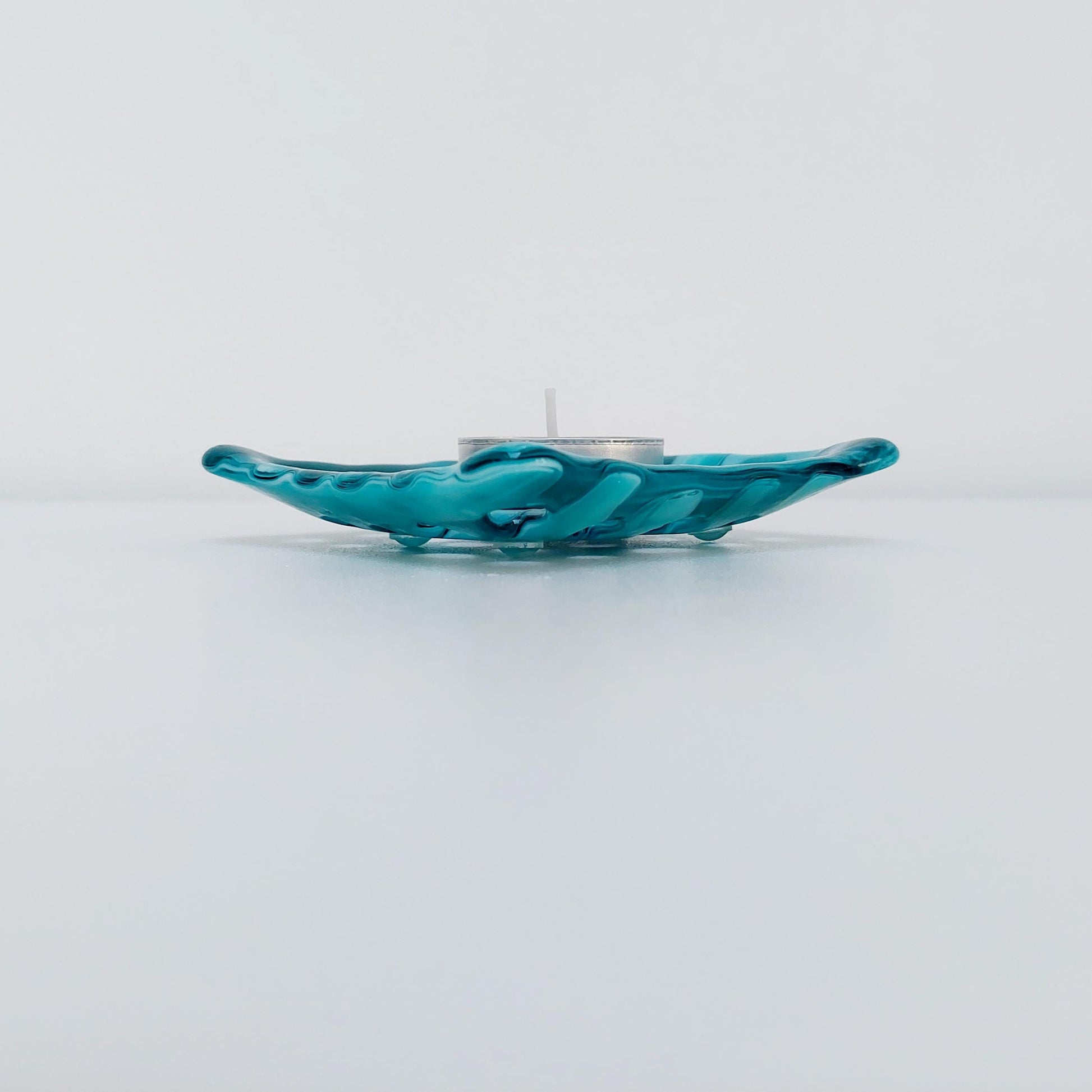 The dish was handmade from blended teal and light aqua artisan glass.