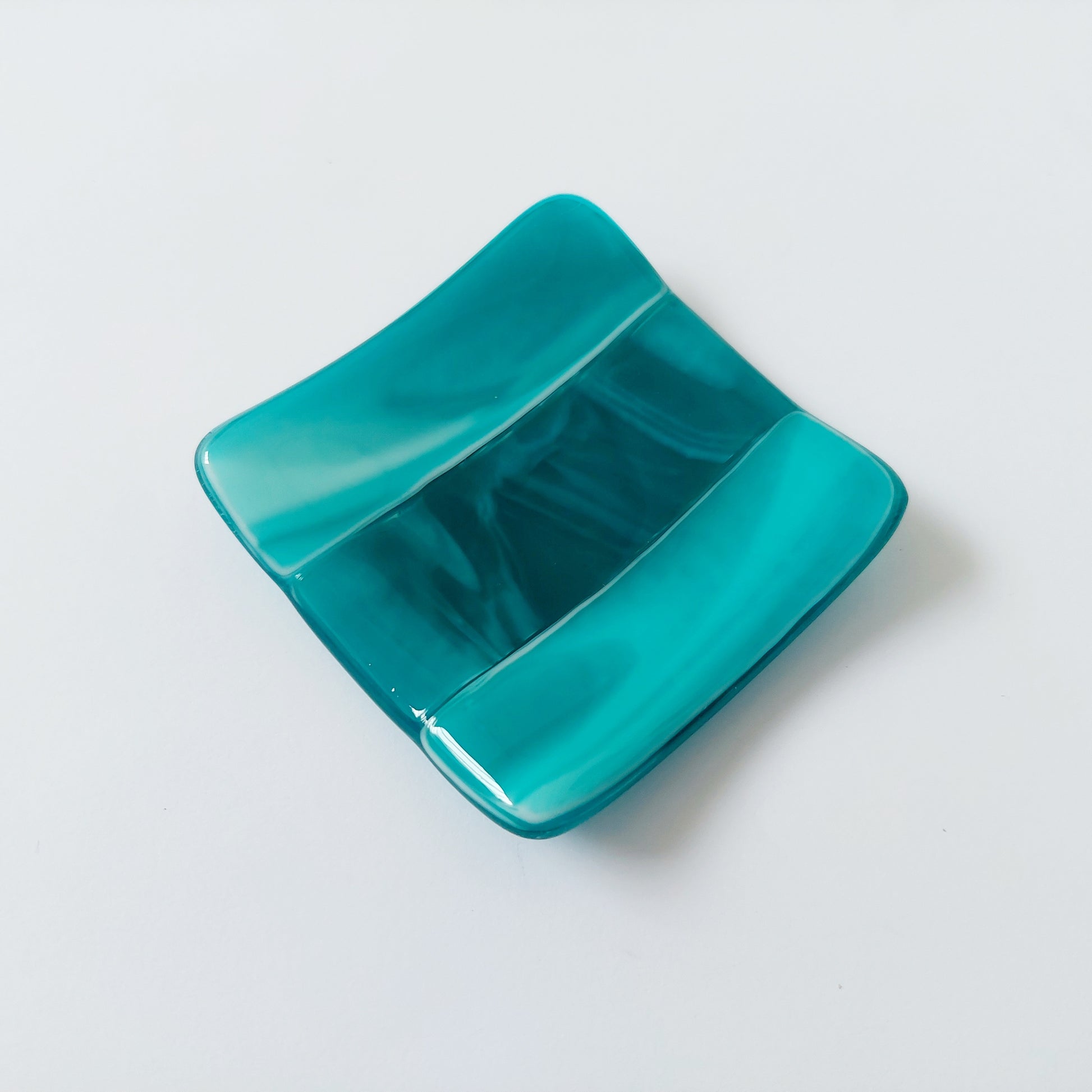 Teal Glass Art Ring Dish, Small Handmade Trinket Dish