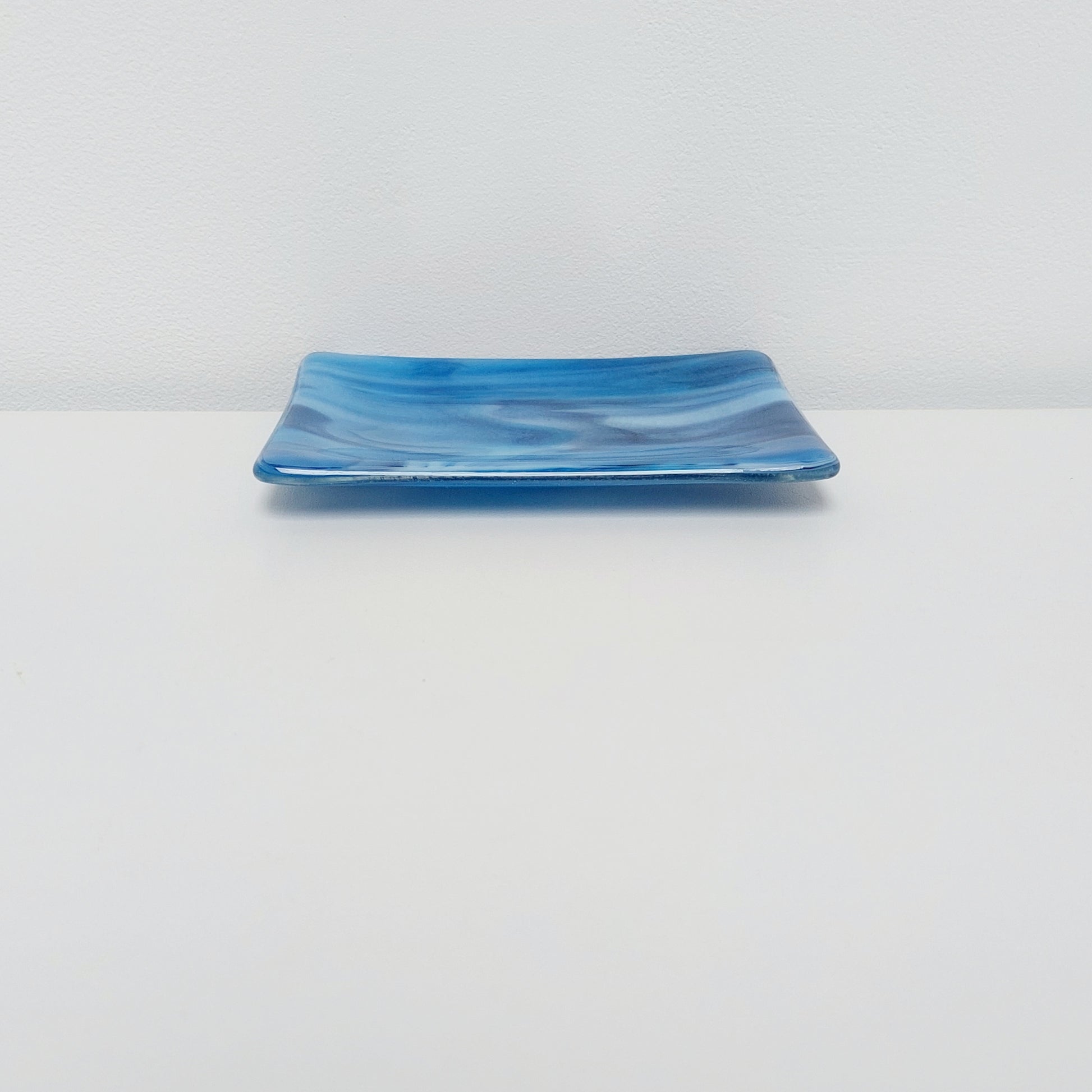 Tranquil Waters Glass Art Dish, Handmade Blue Trinket Dish or Soap Tray