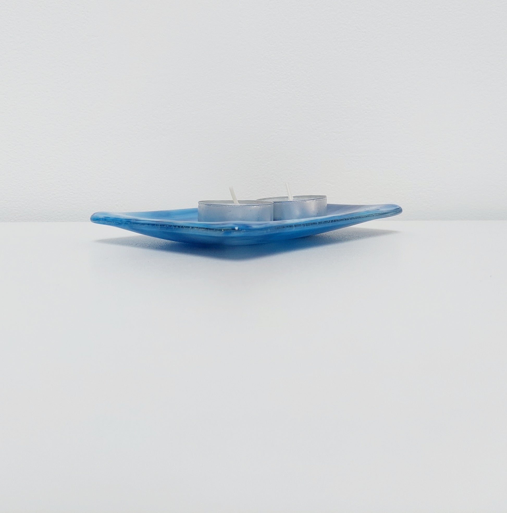 A practical blue glass art dish handcrafted in the Lake District; inspired by the natural landscape.
