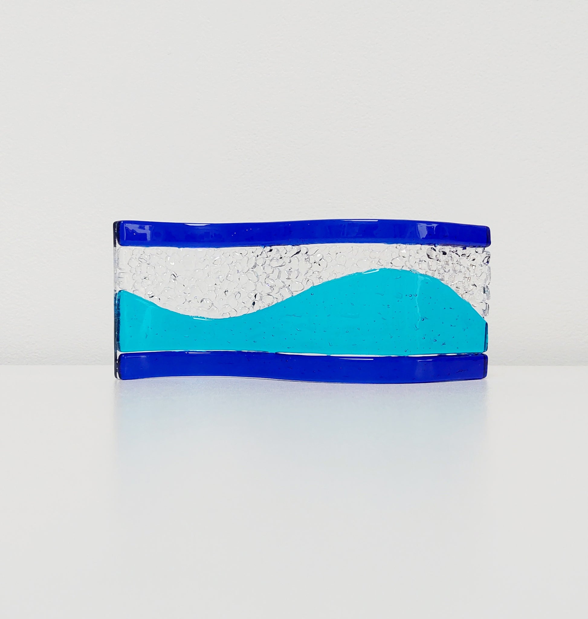 Turquoise and Cobalt Glass Wave, Small Handcrafted Fused Glass Art Ornament